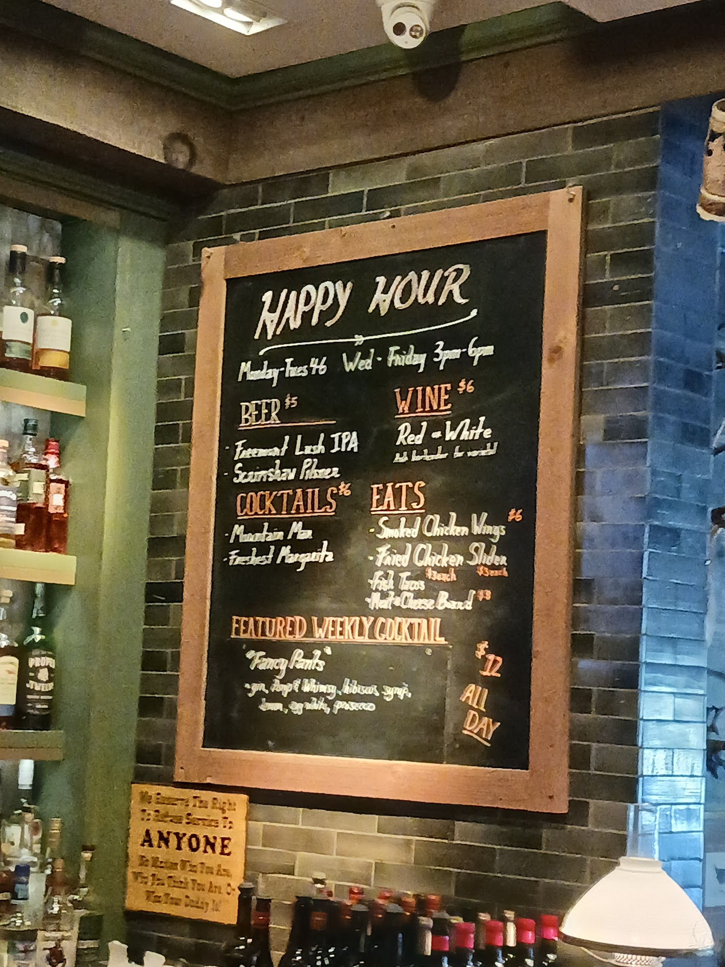 Read moreYou don't go here for the food, and certainly not the fast service. But the drinks are worth it and the energy is great. They allow dogs in the beer garden area, which made this the perfect spot for me. Cute little happy hour shack in the beer garden seems to pop up around 6pm. You wait a long time before getting in an order and then another wait for getting your drink. Everything is ordered at the bar, so that puts a strain on the bartenders. The fish tacos are really not great. Mild flavored mangos, tasteless sauce, basic flour tortilla, and unevenly breaded fish make an underwhelming experience. During happy hour they're $3 for two tacos, so that deal isn't too bad. The garlic Parmesan fries have a good crunch, but raw garlic bits and minimal cheese make it an overpriced basket. They charged the same price for my mocktail as a real cocktail, which threw me off. But the taste of the drinks were great!