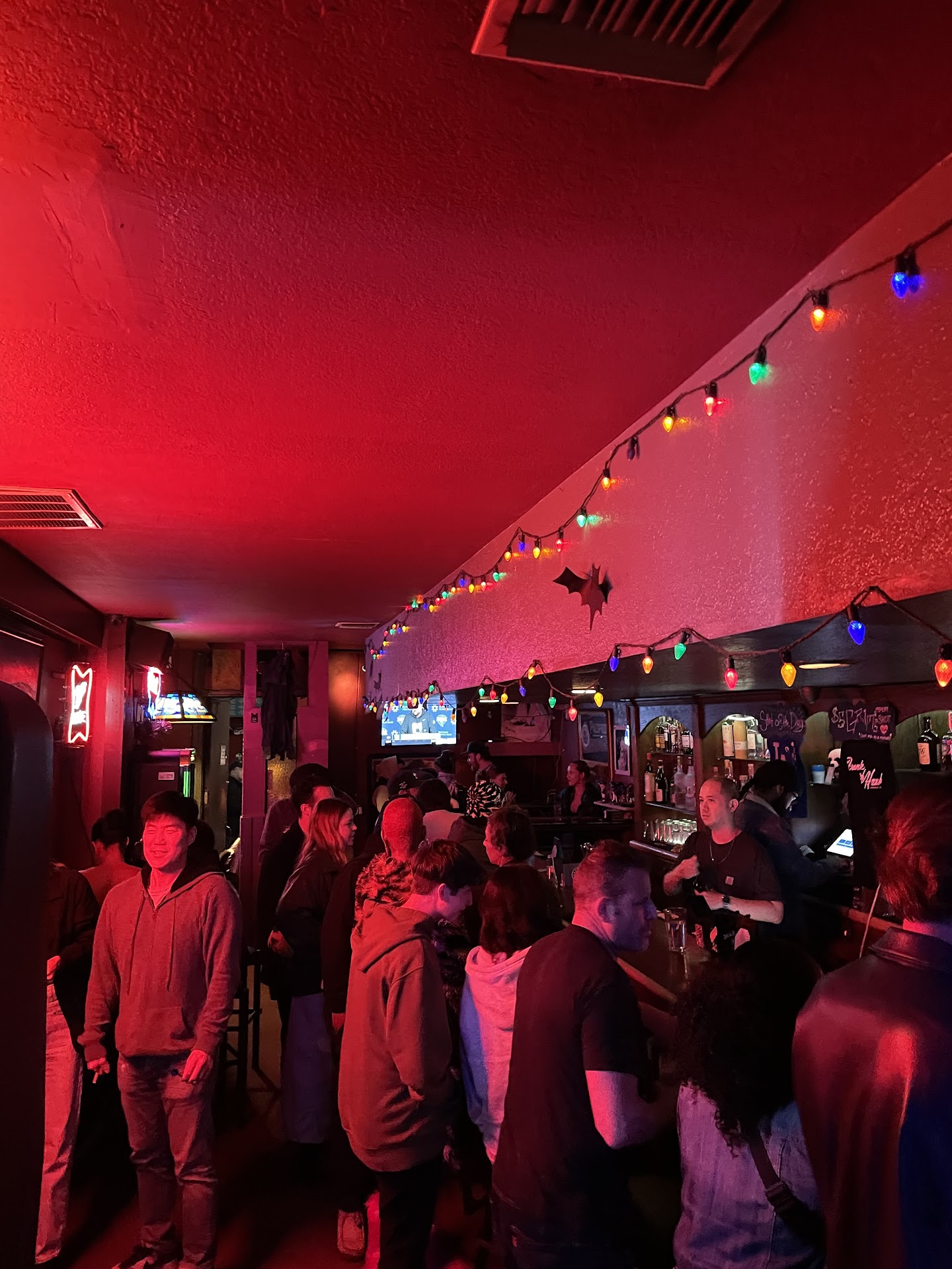 The bar in dark and narrow. At the back of the bar there is a sine electronic dart board and a pool table. It's never hard to find a new friend to play a game with. Everyone I've ever encountered is always friendly.