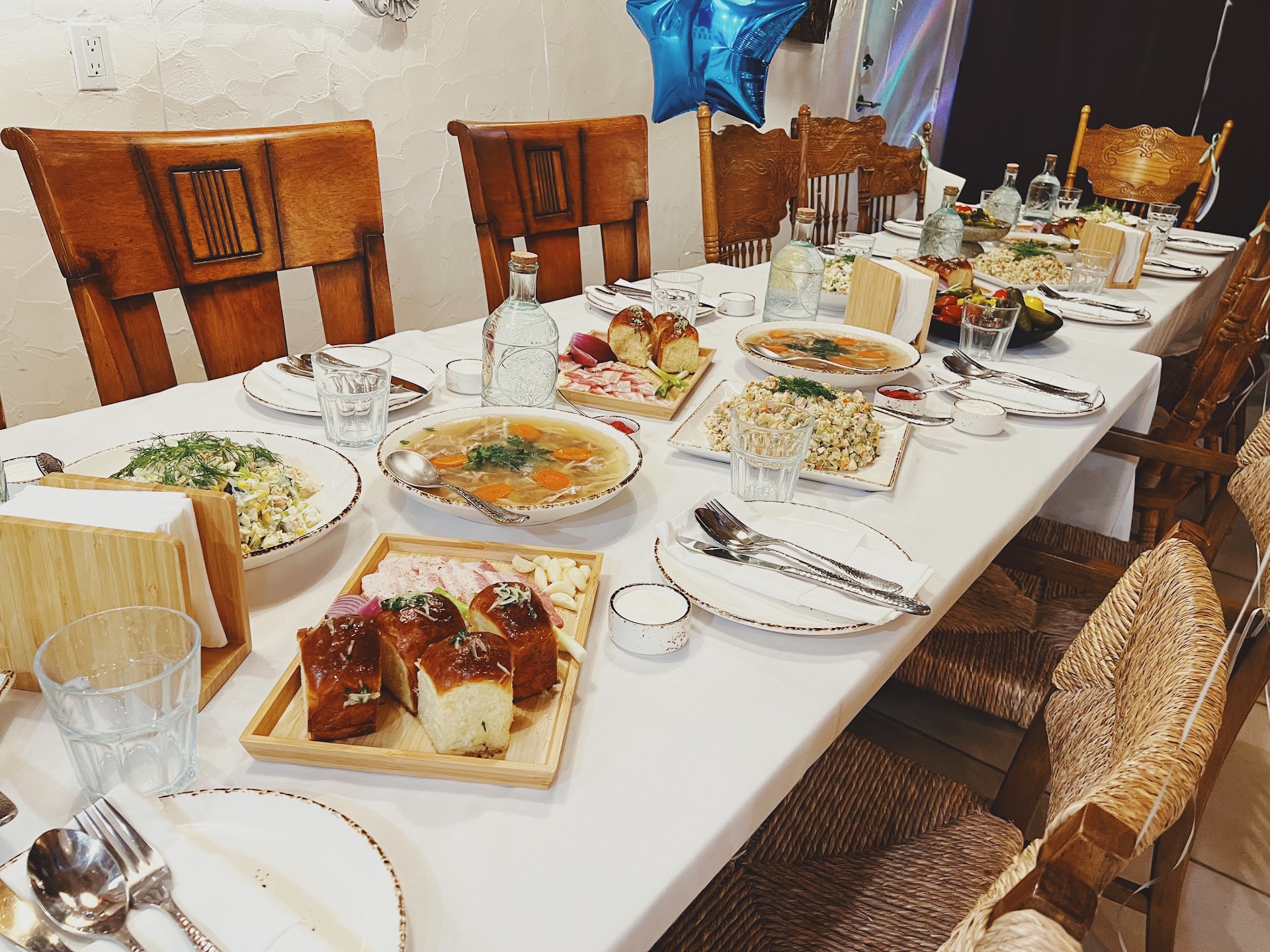 We had kholodets, crab salad, olivie, moxito, borsh, syrniky (everyone is now crazy about them), vareniky..i mean..we couldnāt stop ordering food..