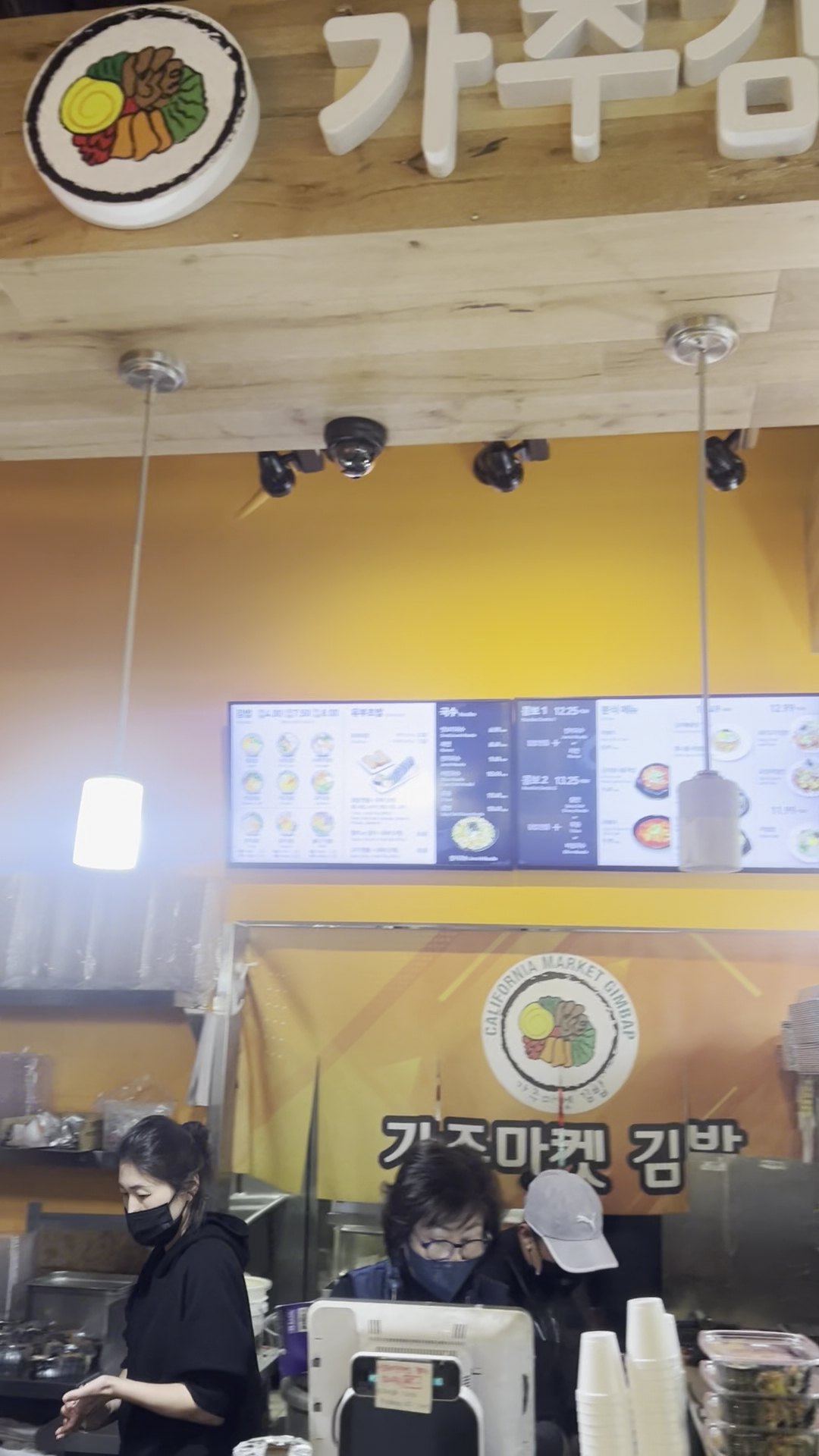 The food is great as always. They have a whole crew in the back that makes some of the most amazing kimbaps ever. Very little rice, which is always a plus, and full of the ingredients. Not too salty at all, and the rice is perfectly fluffy without being too wet. FYI, all of the kimbaps go through the same cutting machine from what I was able to see, so if you're someone who's vegetarian or vegan I'd keep that in mind.