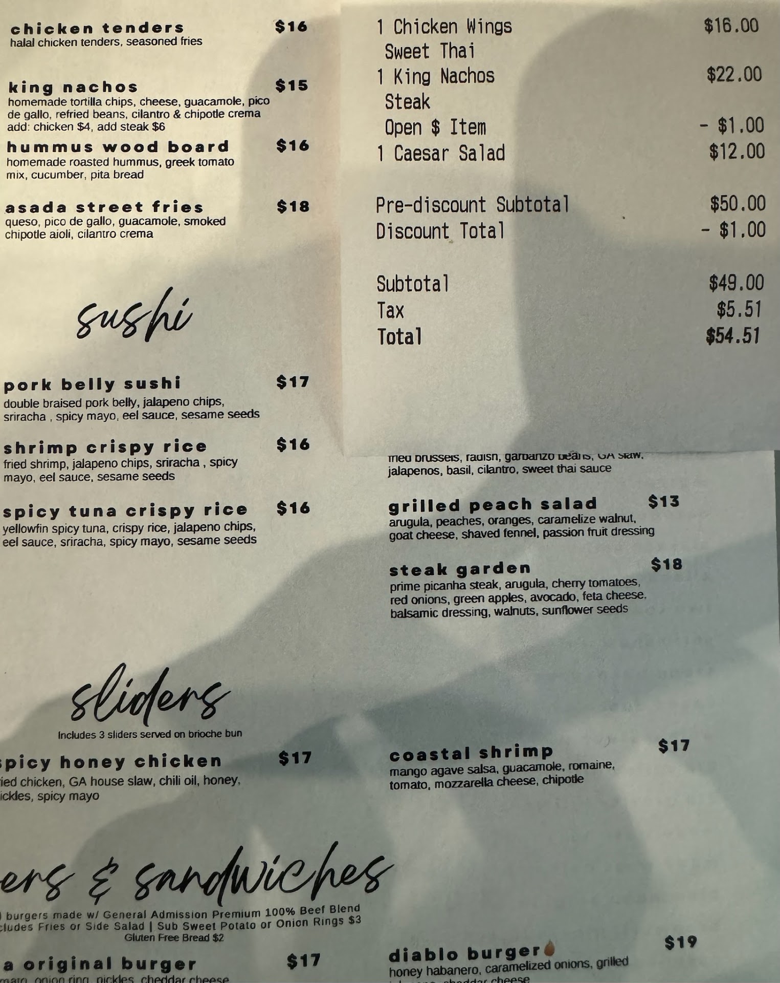 Read moreHere's the thing: a good sports bar is GREAT to find. The magic combo of tasty food, quality TVs and good service is like a finding a unicorn. Not sure why but it seems like sports bar owners are neither competent chefs or savvy business people. And guess what? GA is no different...so sad. The TVs, check. They are awesome - almost too many! The foundational environment, check - airy, light, open - all good. Then they ruin the ambiance by turning the volume up to a level only the deaf could appreciate. They add a DJ and a commentator to play incredibly loud music during commercial breaks and repeat what the professional announcer are saying. Then, there's Hooka. Oh great, that is just what the doctor ordered - $60 Hooka. Let's talk food: I tried the Happy Hour offerings. The drink, a passion fruit margarita - eh - sour and not a drop of bartender finesse - preconceived. The fish tacos - eh: Their frying technique was pretty darn good but they put one strip of fish in a taco with fried pieces of flour in the bottom of the shell as if you would not notice the filler. Oh PUL-EASE! This is LA - food heaven - get yourself together and spend the extra dollar per taco to add real fish OR just don't put it on the Happy Hour. Positive: The burger looked good. Bottom line: So much potential wasted because of gimmicky extras. Capitalize on your location, space and TVs by adding really good food and drinks - Guarantee you will...