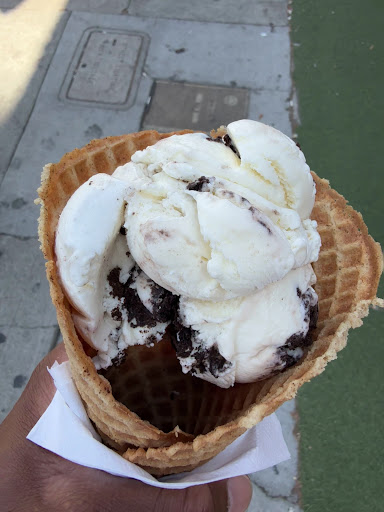 Read moreI used to come in here just for the brownies. They're a bit pricey, but they're large and thick, so it's worth it. Now, I come in for the ice cream. The "best bang for your buck" is 2 scoops, 4 flavors or 4 flavors, 2 scoops...you're basically getting 4 flavors for the price of 2 scoops. With 15% tip on the digital machine, my total was under 15 dollars. The people that work there are cool, the vibe is good, lots of cool yellow vintage style reclined chairs, even a wall with a map of CA showing where they source their ingredients (you can take a selfie with it), good music, both indoor and outdoor seating. SO MANY flavors...kind of like the famous ice cream chain, although I imagine these guys are A LOT fresher. I've never bothered to do DD delivery. DD Delivery: Roughly 17 dollar pints, each one is a single flavor. Ownership should really consider offering half pints at a lower price point. Also, they don't have brownies on their DD menu. Just walk in. Parking might be tricky. You can multitask...if you can't find parking, park at the Beverly Connection Budget Mall across the street...IN THE STRUCTURE, not outside. Then you can hit Ginger's Divine AND get in some value shopping...
