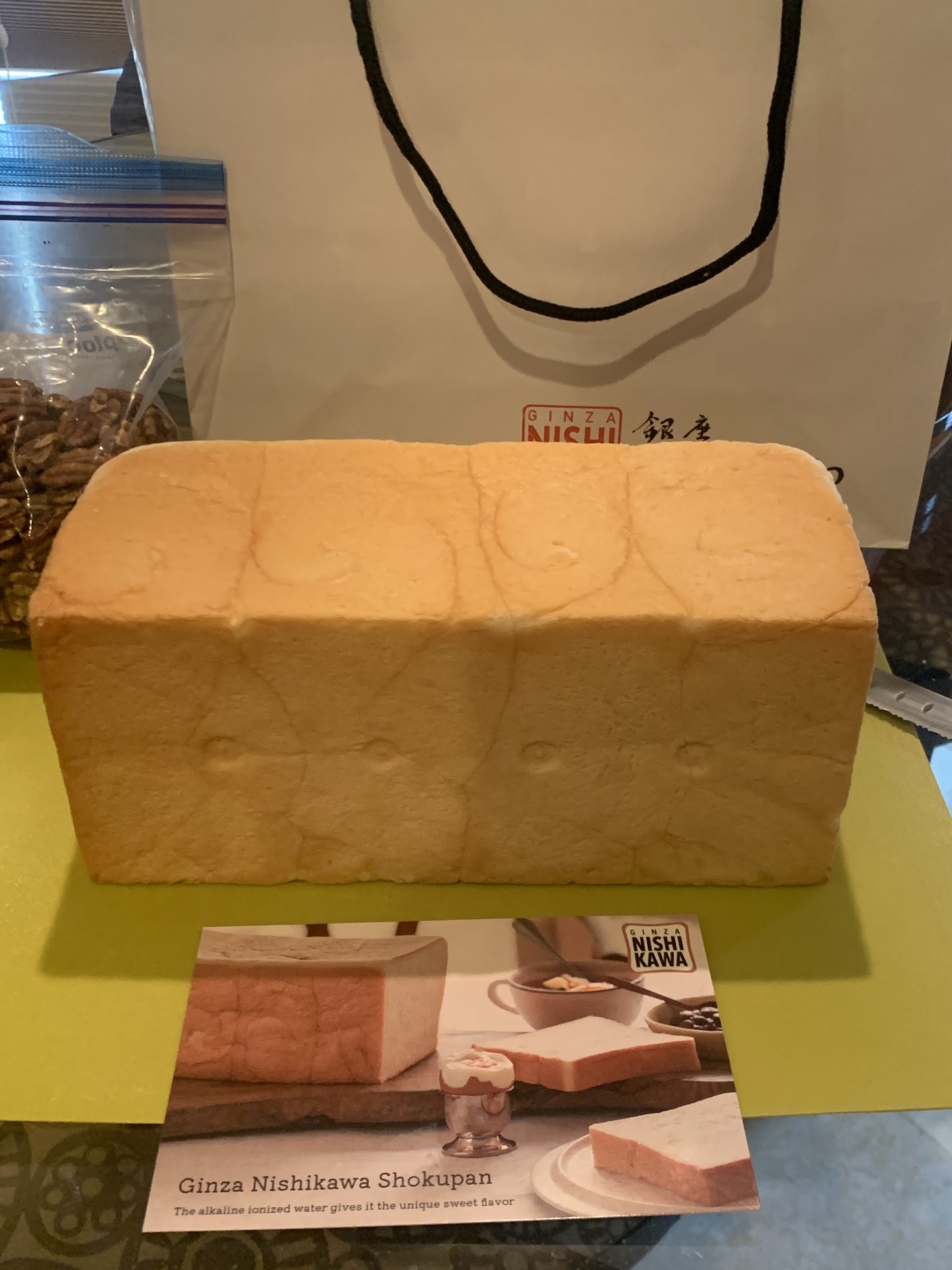 Ginza Nishikawa only sells shokupan, a Japanese milk bread. It is the softest, fluffiest white bread that you will taste. It melts in your mouth. There are no preservatives; ingredients are just ionized water, cream, butter, honey, and Japanese white flour. Sooooo good. It's delicious on its own, or get creative with recipes - french toast, sandwiches, avocado toast...