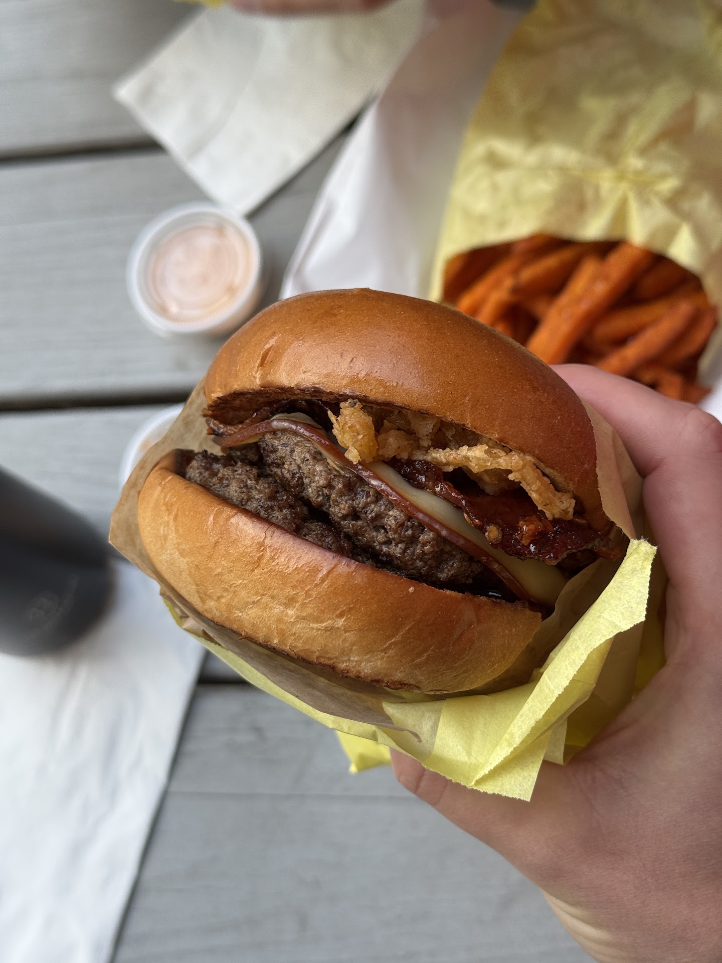 We got two double burgers and sweet potato fries for UNDER $20! Come on! Fight me for a better deal.