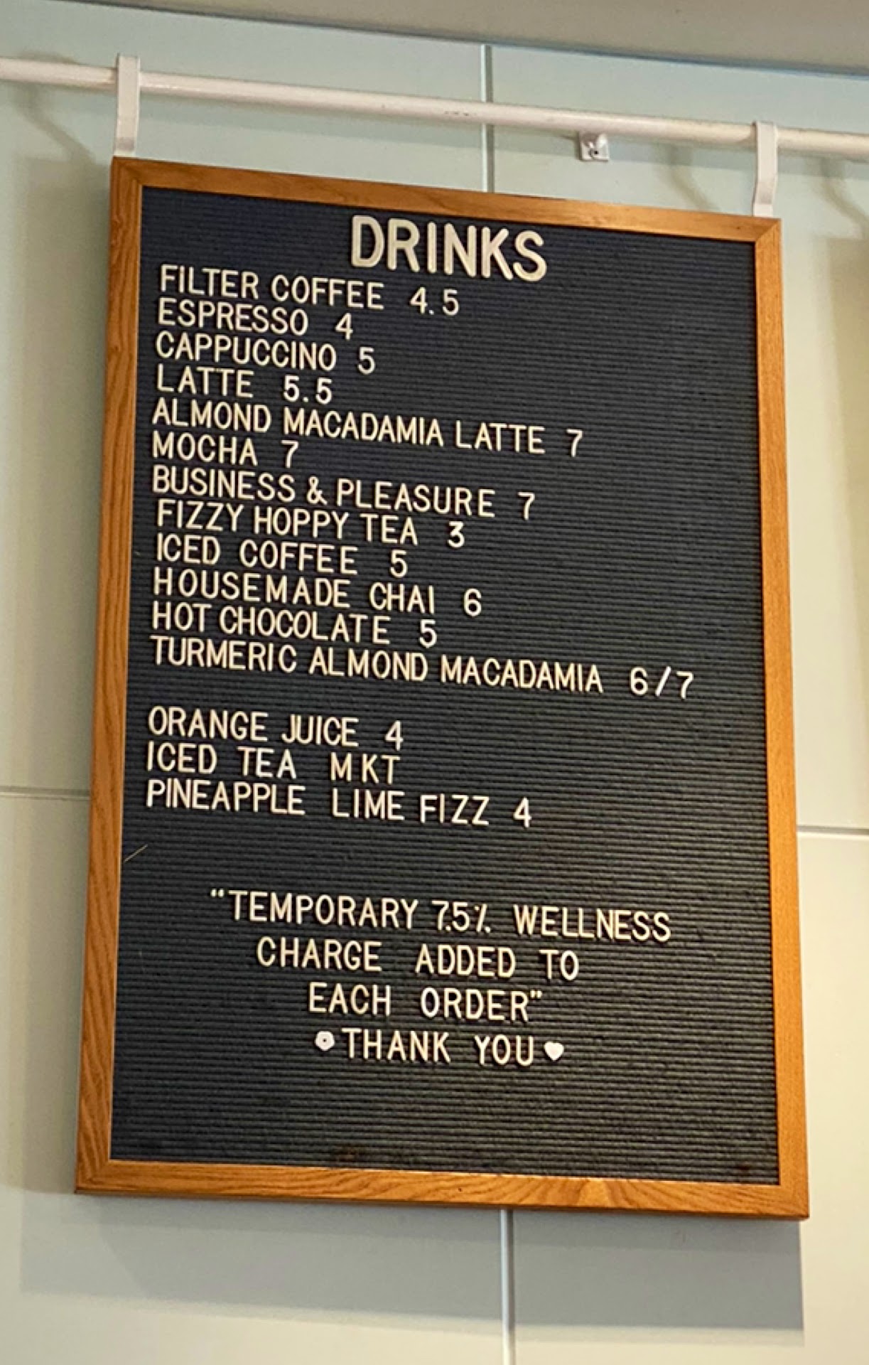 I get the staff are at added risk for working during covid and should be compensated (although imo I feel is the responsibility of the employer not the customer)… it bums me out to see that I’ve been charged an extra 7.5% without my knowledge until I noticed this today, on top of me always tipping for drinks. It’s a bit much and explains why I found the drinks to be more expensive than other places.