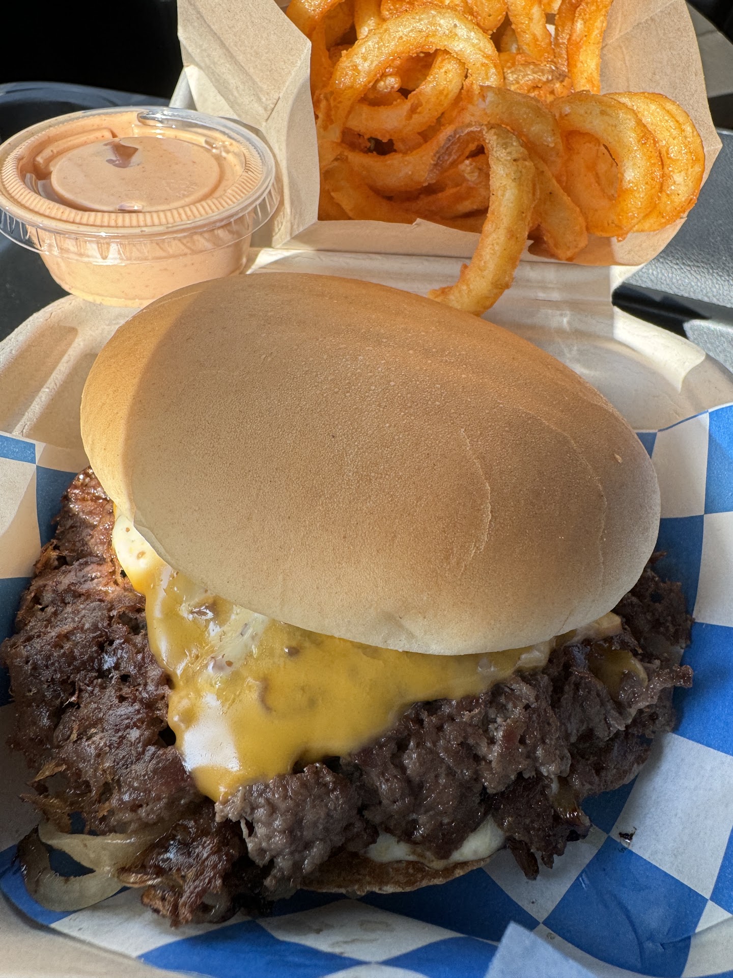 The curly fries, on the other hand, steal the show. They’re crispy, perfectly seasoned, and come with a smoky, tangy dipping sauce that elevates them to a level of indulgence that outshines the burger itself.