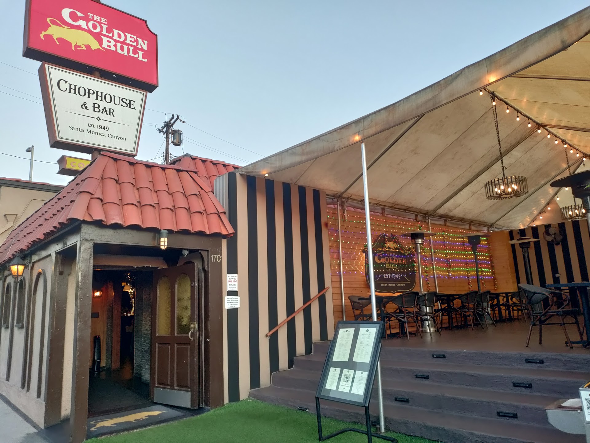 Read moreWe have walked passed by this restaurant for years but never had the chance to dine-in until now. Golden Bull (est 1949) is a fine dine in restaurant located along West Channel rd in Pacific Palisades. They are known serving up fine fare including steakhouse favorites, fresh seafood, and veggie-centric dishes. We came here on a sunny late afternoon as a large group to grab drinks and food after walking at the nearby beach. We were warmly greeted by a female staff and was seated at their outdoor patio on two separate middle tables. We asked the manager/lead host, if we could concatenate the two tables since we’re a large group. He adamantly said we certainly cannot do that. Furthermore, he informed us that there’s a restricted dine-in time limit. In that moment, our group felt that the mgr had to obviate the need from servicing our group. Thus, we informed them that we no longer interested and departed the restaurant. We had a high expectation from this restaurant from the start but sadly we’re very disappointed. I guess a large group such as ours was not ideal for the Golden Bull. Overall, it was disheartening experience for a first...