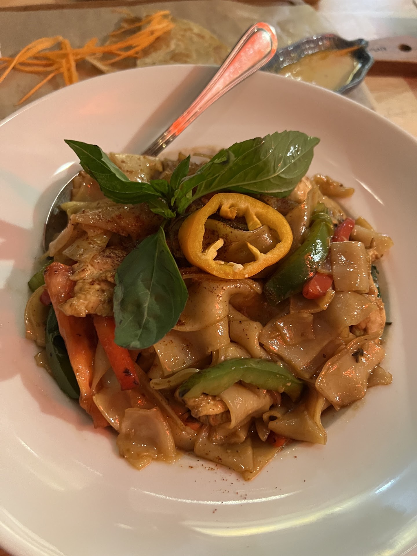 We came on a Sunday for a lunch and it was pretty quiet. We sat outside. They had a few good options, we got Thai dumplings (chicken & veggies), chicken satay, pad thai and pad see ew.
