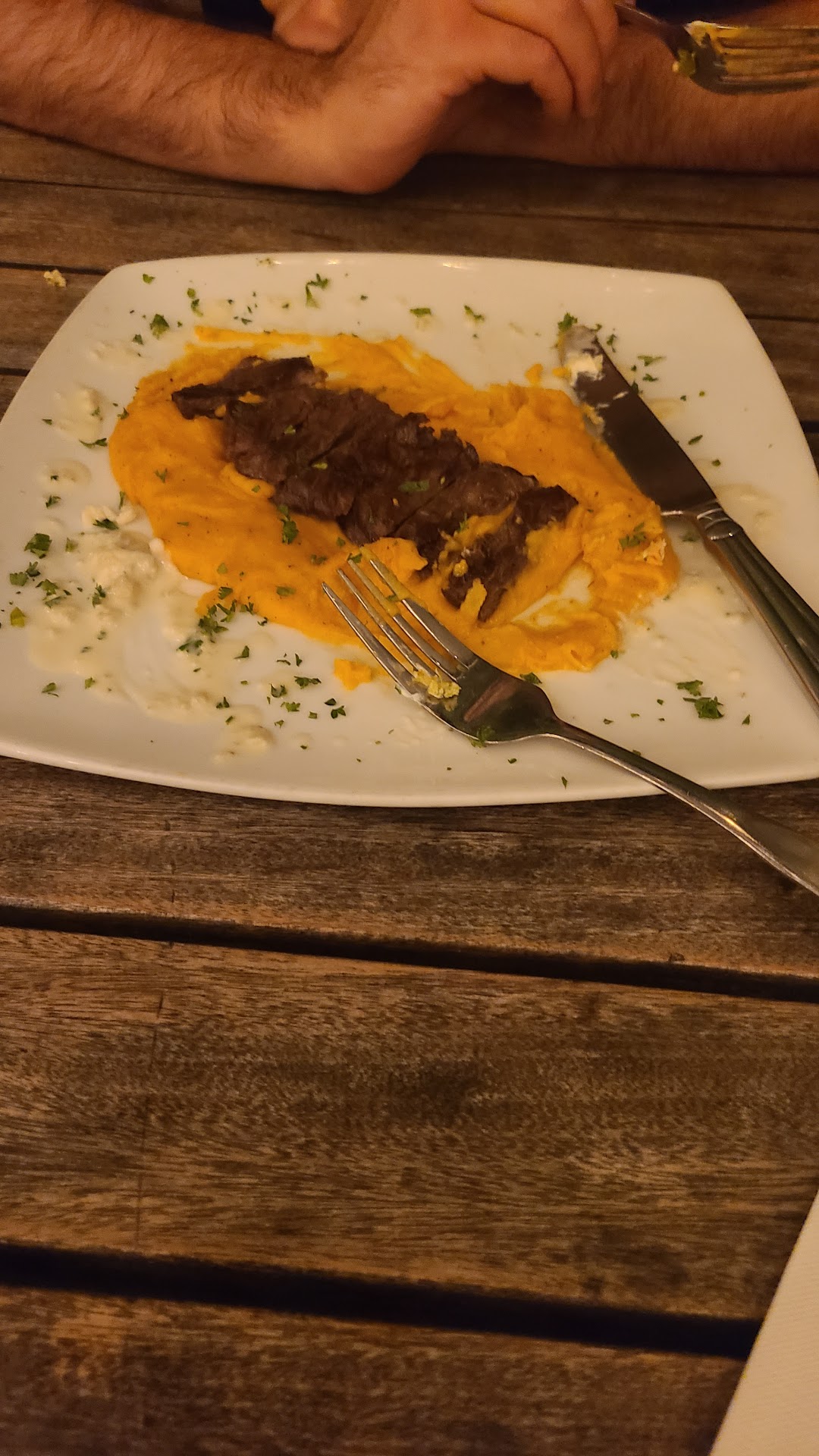 The sauce just sent it over the top. It was very rich. Not too tangy, not too sweet. I wasn't full but I was satisfied. I've definitely had better and they could have cooked the potatoes more but it was good.