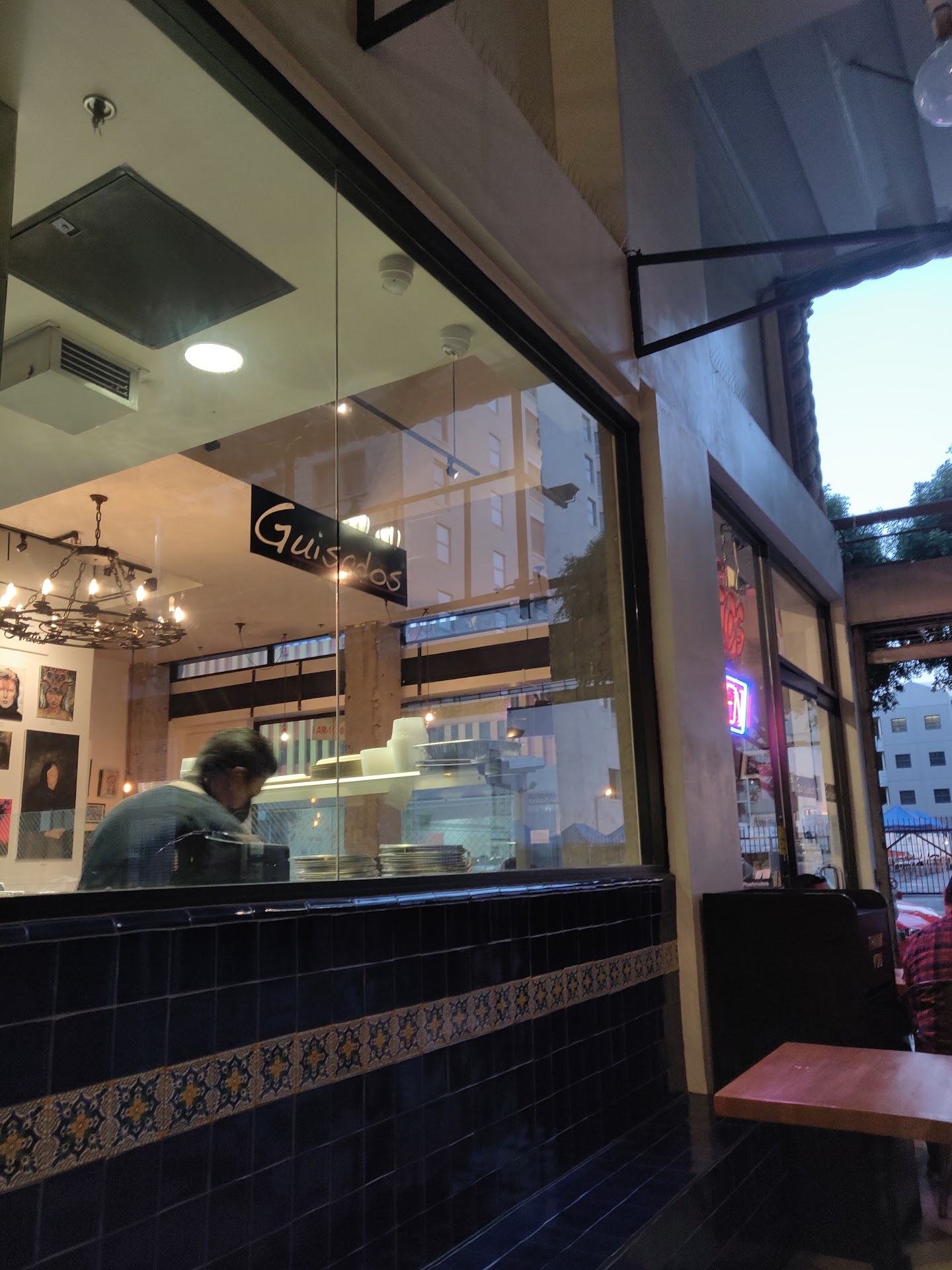 This was a pretty cool Mexican restaurant. Didn't even know about it until recently. But they make good tacos. They have a nice mix of onions, peppers, sauce, and whatever meat or protein you choose. I tried the shrimp tacos and a mushroom taco. Mushroom was pretty good, but the shrimp kinda blew it out of the water. Lol. The workers are nice and they have more options than I was expecting from the original menu (including burritos and quesadillas). The agua fresca was good. I had melon. The tacos will run you a little over $3 per taco, and they're street-sized. So, if you can eat, you might end up spending around $20 for one person if you want to get full off of tasty little tacos. The only real issue was the bathroom. Because it's in a shared space with other shops and restaurants, there is only one bathroom in the center of that space and you may have to wait for the security guard to circle back around to the restroom so he can let you in. You'll also want to keep your receipt handy to show him just in case. Paying customers only. I can't be too surprised though. It is DTLA, which is surrounded by homeless people. So, they're probably trying to prevent squatters or anyone using up limited resources (running water) during all of the economy instability. Gotta protect your assets and whatnot, right? Anywho, this is a good spot for Mexican food. Slightly larger portions for the tacos would be great and probably turn my rating into a 5-star rating. Overall, I'd recommend trying it if you haven't. I think you'll be...