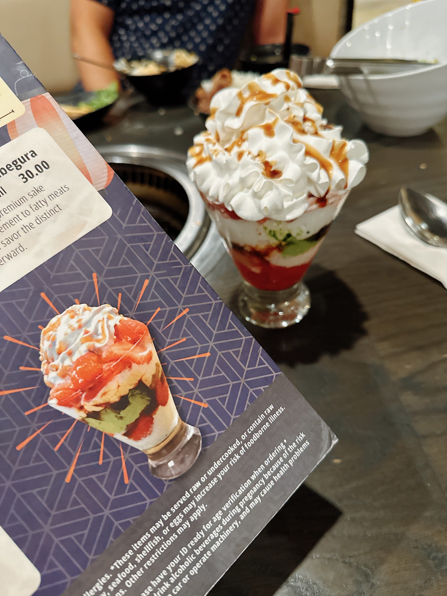 Read moreCame here for my anniversary with my boyfriend and was super excited but left disappointment. Leaving it at 4 stars because Jonathan helped us with our first order and then Nico and Mathew were the ones that helped to make sure we were served in between their assigned tables and made sure our night didn’t become a horrible memory because of our main server. The main server was a short dark hair girl that had long styled nails. Wasn’t really around long enough to get her name. We were never served water or any drinks.. even got our main dishes before we got any miso and rice until we asked for them. We asked for our grill to be changed but felt like we had to wait until the grill became all black before we were desperate enough to wave another server (Nico) down to help us. Same goes for the matcha tiramisu parfait with strawberries, which actually made me sick all night. Not sure why we were assigned to her because it didn’t seem like she gave any of her customers near us and us the adequate service.