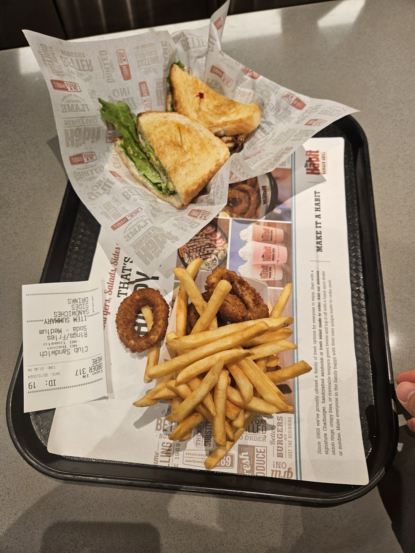 Read moreI took my wife to this Habit Burger location to grab dinner tonight. I picked this place since it's across the street from Baskin Robbins and my wife wanted to go there afterwards to get ice cream. This Habit Burger is in a big plaza so finding parking will be easy, you can try to park in front of the place but it might be hard to get out of that small plaza. When we walked in, they only had 2 guest dining in and it's not a big dine in place. They only have like 3 booths and 5 tables for people to sit in, they also have outdoor seating as well. My wife went with their club sandwich, half fries and half onion rings with a drink. We had a offer from the Habit mobile app so we used that as well. They have 2 kiosk where you can put in your order yourself but we did it with a cashier. We dine inside and sat at the booth. My wife food didn't take long to come out and she really enjoyed her club sandwich. The place also has 2 gender neutral bathrooms as well toward the back and there no...