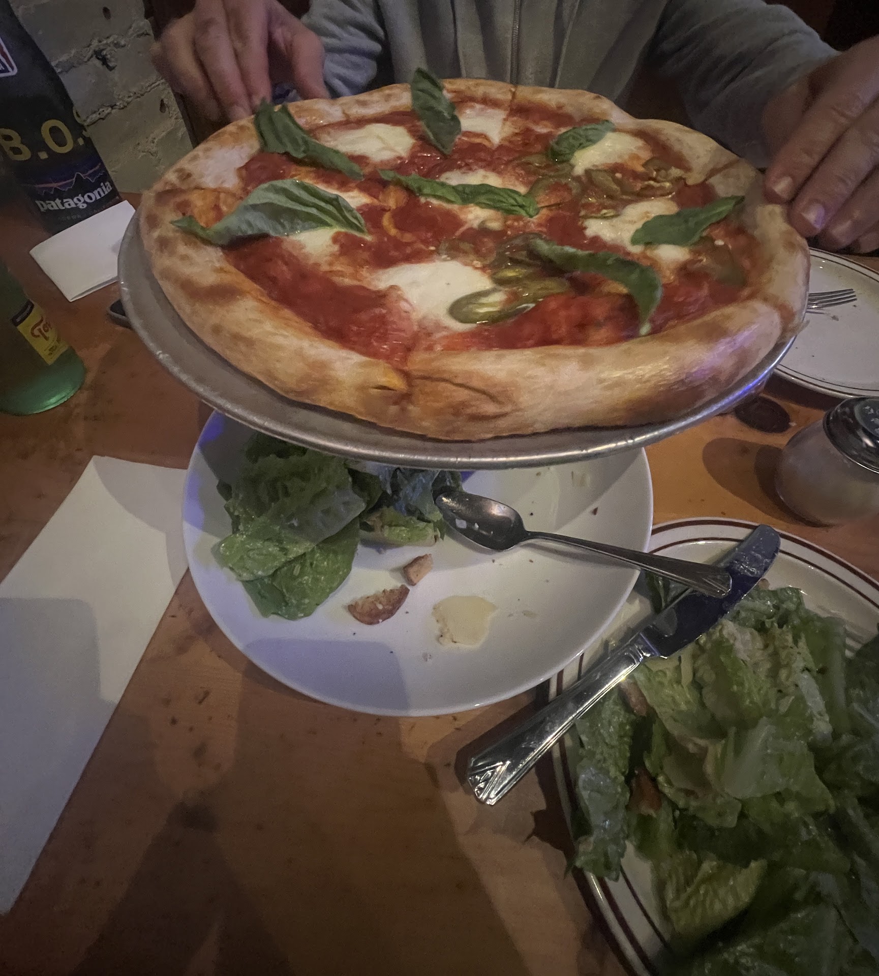 On the other hand, my friend and I were seeking thin pizza, and thatās what we got. The crust sufficed; a little more color wouldāve been better. The sauce, I couldnāt care for really. The mozzarella stood out. The jalapeƱos were pickled and too vinegary that it was off-putting, unfortunately. Quite skimpy on them, too. A bit above subpar in taste. It helped my disparaged salad.