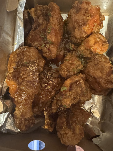 Read moreA small Korean fried chicken spot. They are located in a strip mall in Ktown east of Western and 8th street. It's a small place, so it can get crowded pretty quickly. They have a bunch of TVs so it kinda has a sport bar feel. They do specialize in chicken wings. The wings where pretty good. Came out super hot, so let it cool down a bit or you can burn your mouth on your first bite. They have a bunch of unique Korean style dips and mixes. I tried the plain fried chicken because I wanted to taste the chicken. It was Krispy, crunchy, and juice. It had a nice flavor to it that would pare great with dipping sauces. Even your plain ranch dressing or just ketchup and mayo. They do however, have a limited beer menu. They dont offer korean beer, which was kind of weird but it's cool. I believe most people get thier wings to go or uber or postmates cuz we saw a lot of ordered going out when we where there. I would reccomend this place for those who love chicken wings. It's a place to try. They do have different heat levels. I'm a wuss as spicy wings so I kept it mild. They do offer sides like fry's, sweet potatoe fry's, fried...