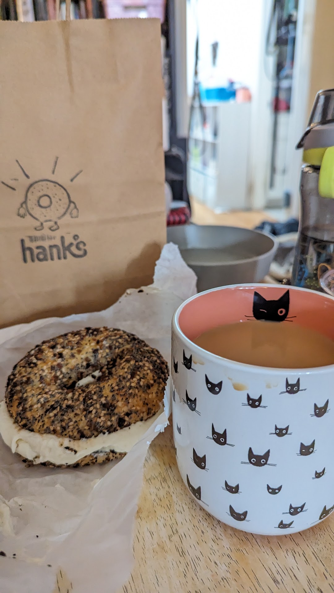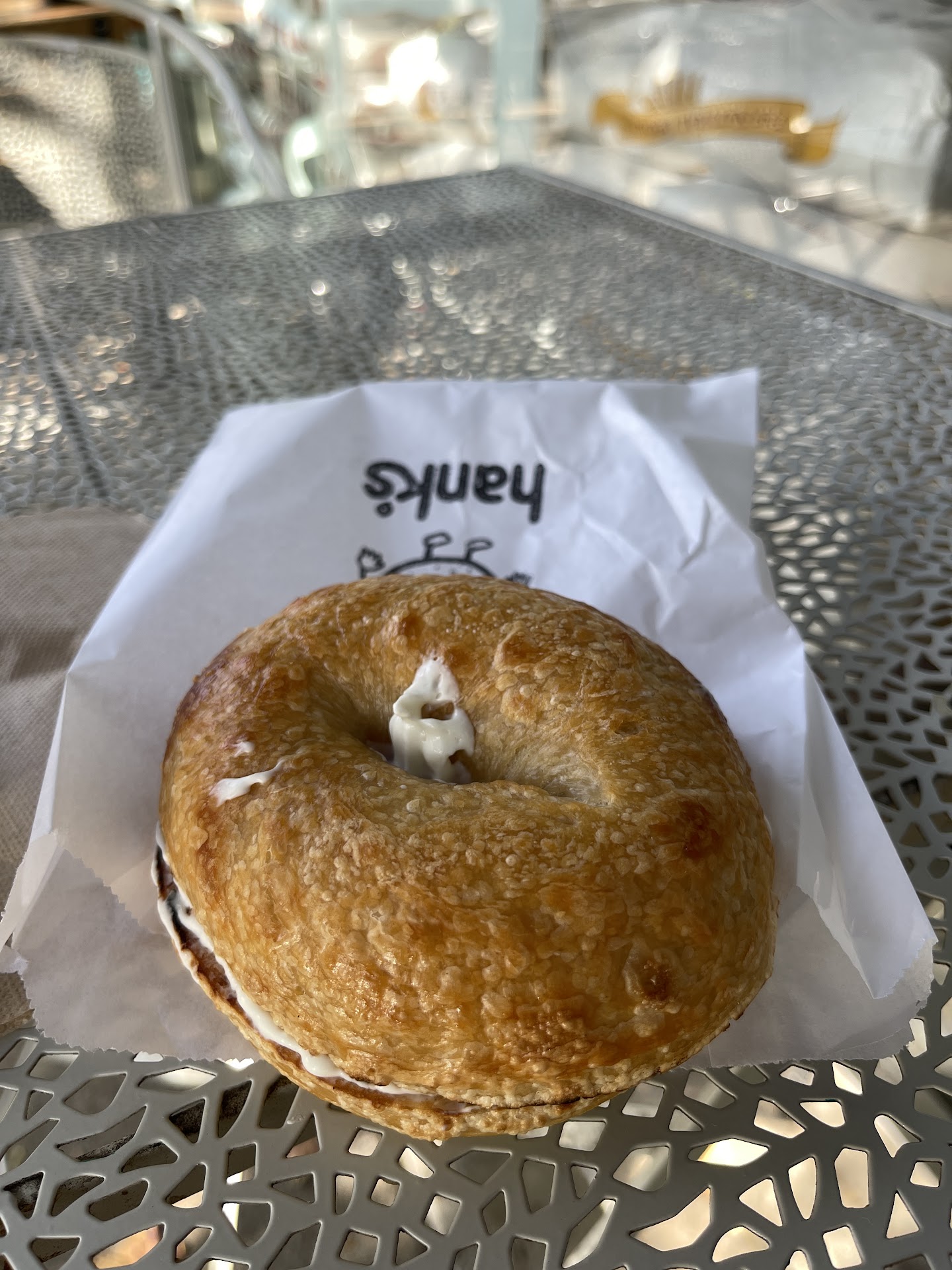 Read moreWhen the saving grace of a bagel shop is the outdoor seating, it’s not a good sign. Killing time while waiting for a friend at a local salon, I walked down Ventura Blvd and stumbled upon Hank’s. I’ve been in LA for almost two weeks and had been craving a sesame seed bagel so of course I stopped in. They only had everything, plain and Rosemary Thyme bagels. I opted for a plain with cream cheese, paid my $5.25 and sat outside at the sunny sitting area. I was impressed that the bagel was warm… thinking it was recently out of the oven I was especially excited about the freshness. Size was good, color ok, but didn’t look like a New York bagel. Still thinking optimistically, I took a bite- cream cheese nice but nothing special- bagel- overly tough and excessively chewy! When I swallowed that gob, I tried a second bite- still wanting it to be good-the flavor of the bagel itself was off… was this sourdough? Which I love but is the wrong dough for a bagel (iykyk) or -horrors!-was this zapped in the microwave adding to its chewy toughness? The bubbly outer crust convinced me it must be sourdough- oh no, no no! I felt like I was eating a bag of rubber bands instead of a bagel. I felt embarrassed that my New Yorker Bagel-radar was off or completely broken after years of not living there. Sorry Hank and your fellow Angelinos, this is not a proper bagel! I took only those two bits and tossed it in the bin. 5 stars for friendly staff and quick service. -No seating indoors as you can view the guts of the kitchen and see staff prepping for lunch orders and baking bagels which had a cool...