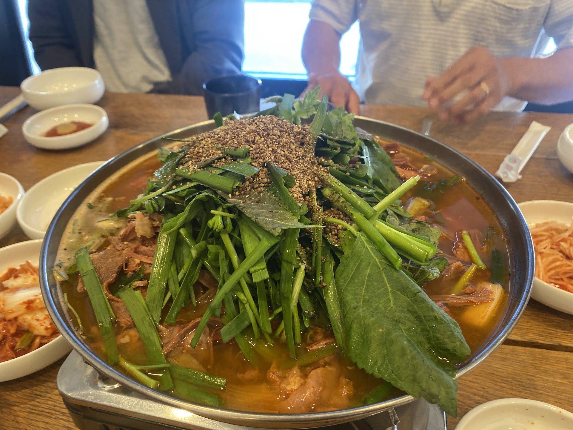 The food (goat stew) was great. Come early or a little after the lunch hour to find a place to sit and to park, but it's worth it. It's what one would call "a hole in the wall", but the goat stew makes up...