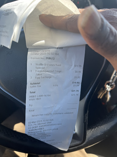 Read moreSo let me just preface, I have gone here for years with my family and it is literally one of my happy places. I have always had great experiences here, the food is yummy and it is just a nice place to be. The last time my friend and I went, we had a server named Nancy who I hadn't met before, but she is my new favorite server. We sat at a table next to a man who appeared to have some very specific requests and he repeated himself several times, meaning 6 or 7 times, and I wondered how she would react. To my delight, she reacted each time as if it was the first time he had asked. Surprisingly, she did not get irritated, just took it in stride. She came to our table next and had the same happy smile and demeanor. I have a food allergy so I am also very specific about my meal, and she made a note and followed up to make sure that I was safe. Having their Gluten free pancakes is a HUGE treat, and she made sure that it was made to perfection. If you are looking for a place with great food, service, and family atmosphere, I will share my happy place, there is plenty of...