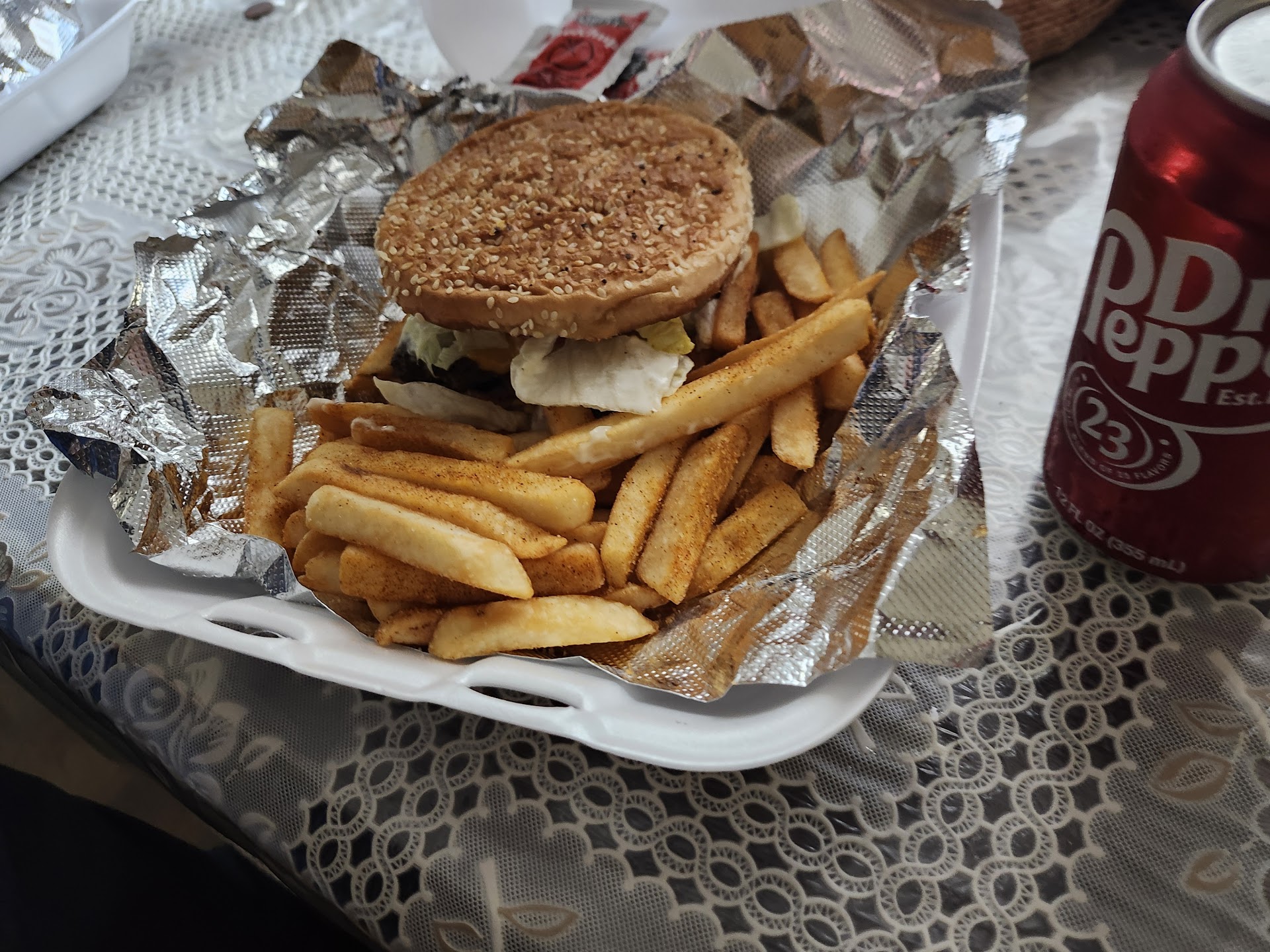Read moreFrom the moment I called in for verification of handmade homestyle burgers, I was pleased with the customer service. When I pulled up, I was greeted and directed from my car. Whom turned out to be the owner, "Mr. Happy Time" was very down to earth, cheerful, and his burgers were delicious. I ordered two cheeseburger combos. Was happy the grease on the fries taste fresh and not like it was shared with fish. Very satisfied 1st...
