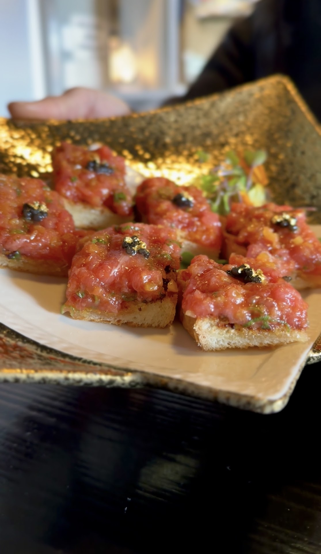 Here's everything you should try: Toro garlic toast, this is like spicy tuna crispy rice but make it GLORIFIED with caviar and gold flakes on top. 8-piece premium sushi set that comes with miso soup made from fish bone. Each piece of fish was perfectly dressed and melts in your mouth. If you're in the mood for cooked items, try the Hato rice in hot stone, this was absolutely delectable with two HUGE chunks of black snapper and so umami~