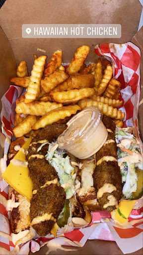 Read moreI first found this spot in the parking lot of a car wash. They had set up shop in the parking lot after the car wash had closed. I literally rolled my eyes drove by the first time thinking "oh another hot chicken spot" but every time drove by the line was longer and longer. I finally pulled in waited in line, placed my order and waited for the food. I kept thinking to myself I will not be back because I hate waiting lol BUT let me tell you, I ate all of my chicken sandwich and inhaled whatever my girlfriend couldn't finish. The wait was sooo long cause they fry those delicious chicken tenders as orders come in. The hawaiian rolls combined with their sauce is amazing. So when I found out they had finally opened up a shop you best believe i took the drive from Santa Clarita down to Northridge to get some. I got an order of mild luau fries and an order of Hawaiian plate, came with 2 sandwiches and fries. Just as good as it in the...