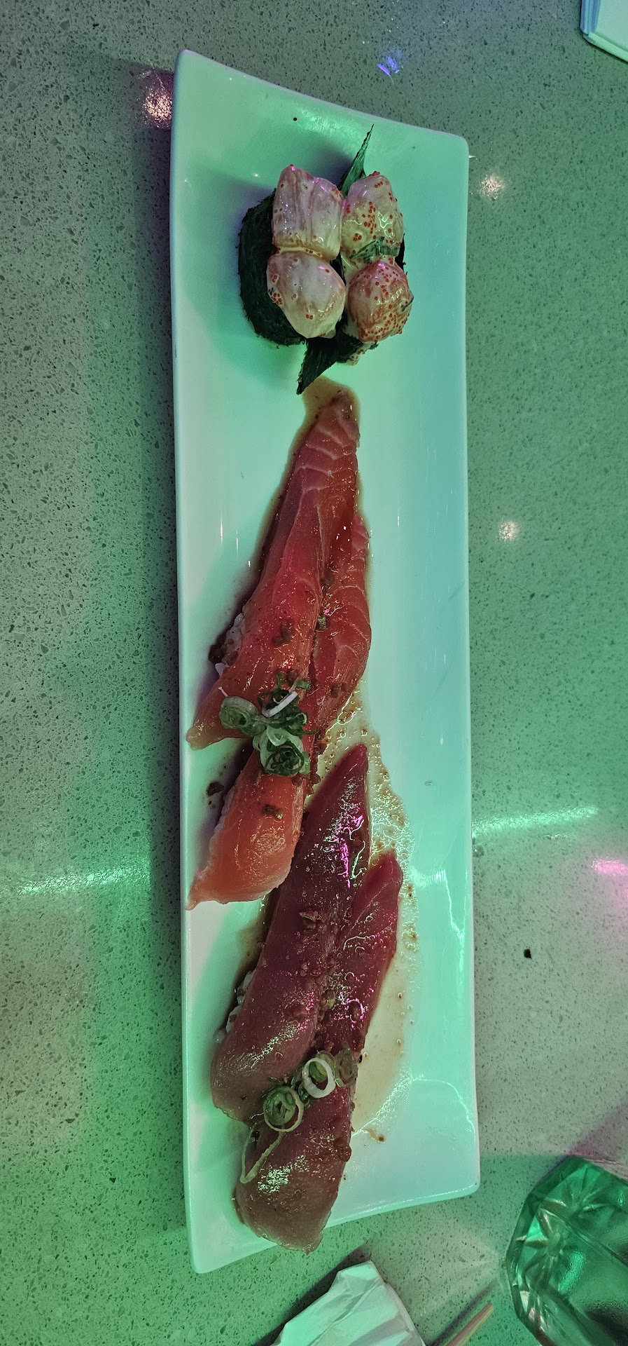 Read moreMy husband and I visited this restaurant twice in three days on our honeymoon in LA. The first time we came here the service was amazing and fast. The food was creative and delicious! It was unlike any other sushi restaurant that I had been too. The way the chefs presented the food was what made this place fun! We enjoyed everything we tried. The lights and music made it a fun atmosphere. Our first visit was great, wish I could say the same for the second visit. We arrived and there was maybe 4 other tables of two people each table. We were seated quickly which was nice but it took the waiter about 40 minutes to come over and take our first order. The waiters would clean tables or just stand there doing nothing while we sat waiting to be served. I noticed they were the same for the other tables. Things started to get better once im assuming it was a manager walked in and everyone started to serve tables quicker. Maybe they were just having an off day on our second visit. The first time we came here the waiter was on top of everything always asking us what we wanted next before our current plates were even empty. It was great! I'm still giving them 5 stars because our first visit was so enjoyable and I know they are capable of doing an...