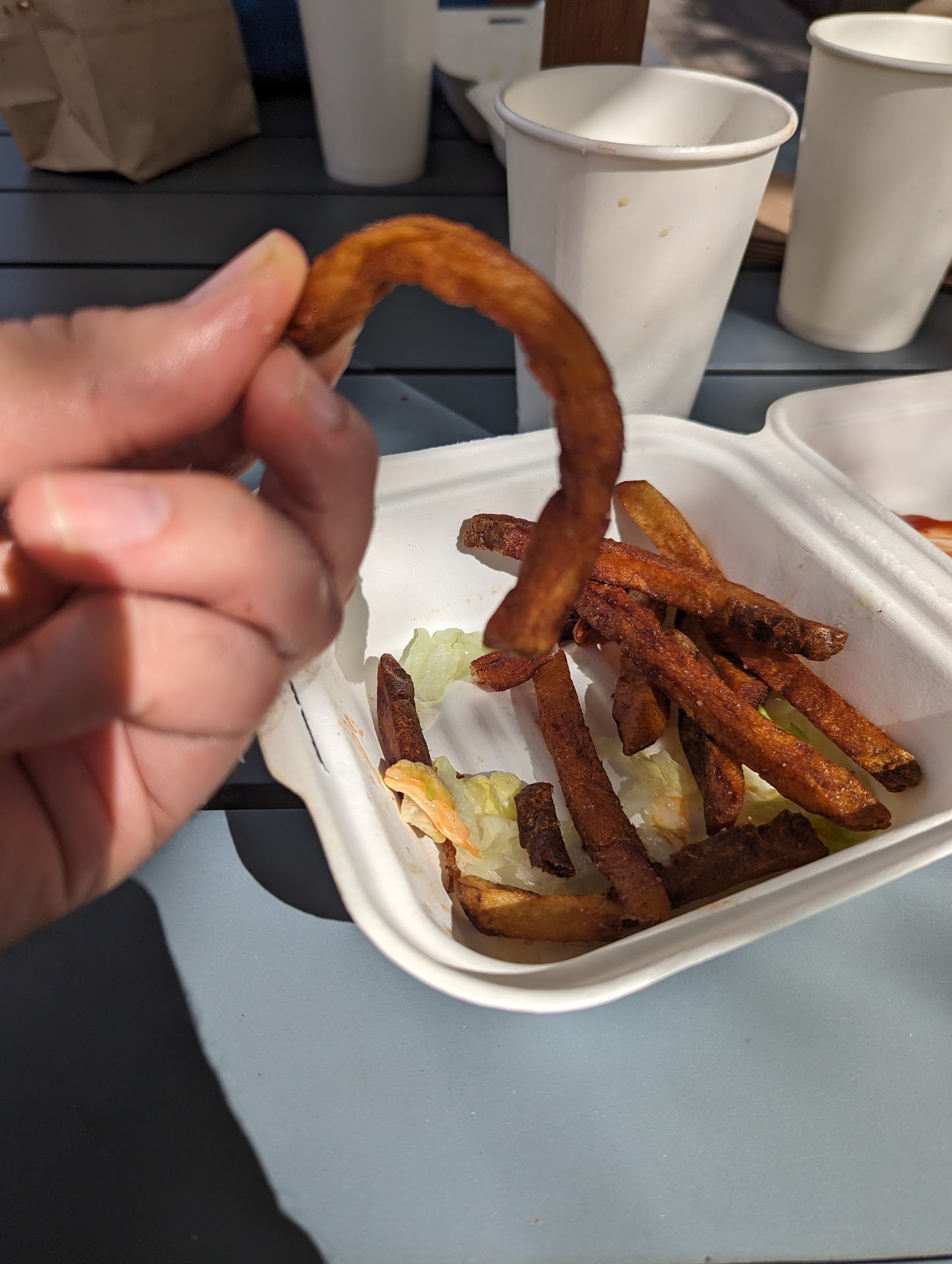 I'm a vegetarian so I can only rate the veggie burger, and it was quite decent. So this is really a review of their fries...