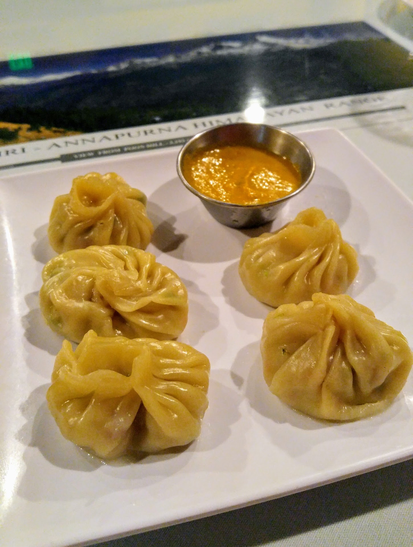 I haven't found momos since my street food diners in Delhi! The tomato cream dipping sauce is flavorful, but ask for some hot chili sauce to mix in - it will take it to a stellar level of complexity for the little steamed dumplings.