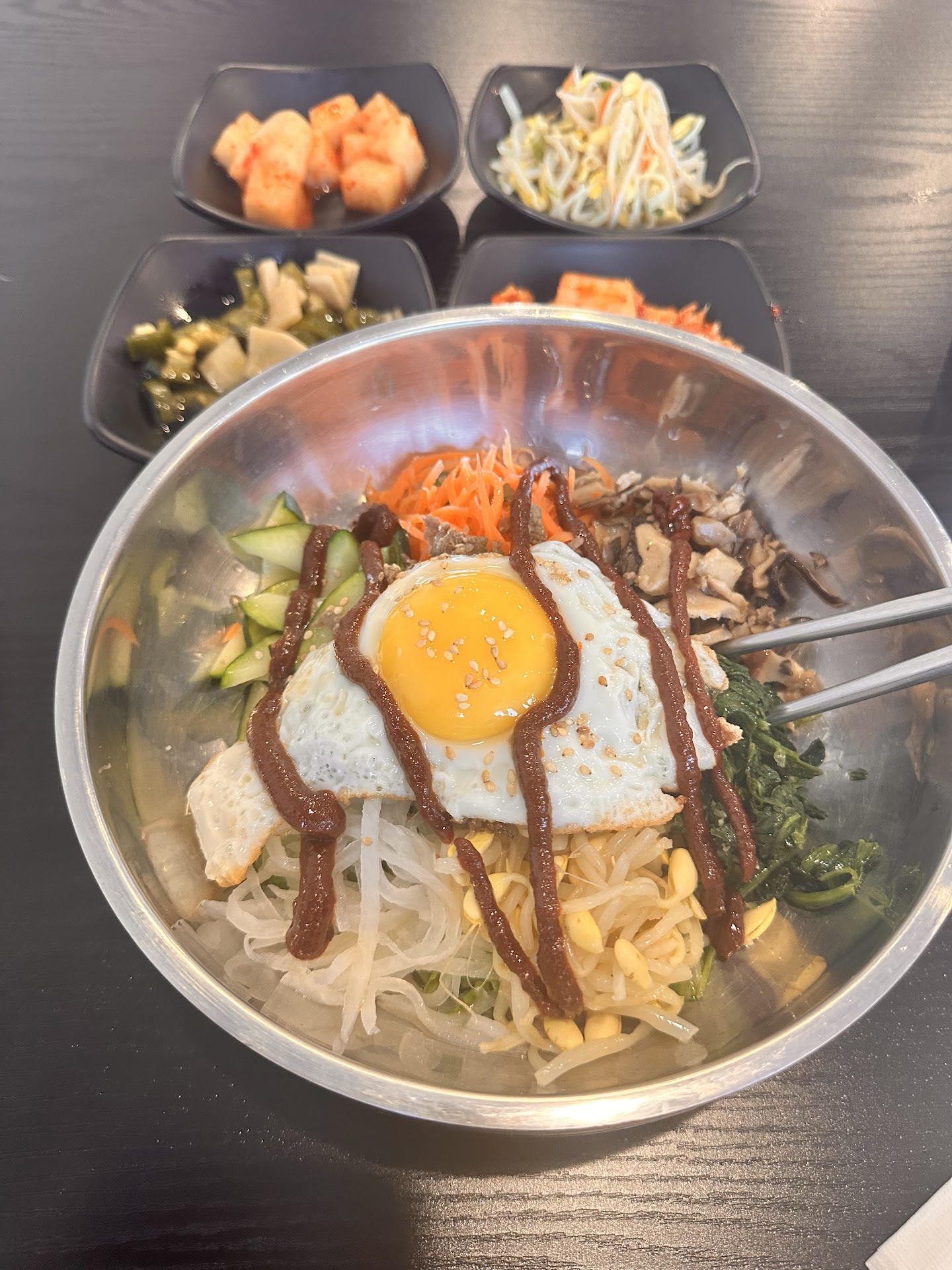 I opted for the spicy pork, which was an absolute delight. The pork was tender and cooked to perfection, with a spicy kick that was just right—not too overwhelming but enough to satisfy my love for spicy food. Each bite was flavorful and fresh, with the spices and marinade perfectly balanced. My spouse chose the bibimbap, which did not disappoint. The dish was a beautiful mix of fresh vegetables, savory beef, and perfectly cooked rice, all topped with a delicious fried egg. The presentation was impressive, and the flavors came together wonderfully.