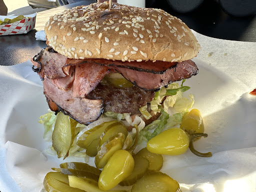 Food truck with a modest seating area & menu of kosher burgers, sandwiches & Middle Eastern bites.