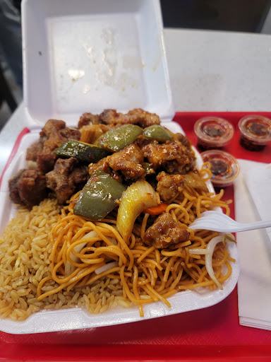 The fried fish is not fresh, has no taste, is processed. There was one slab of it under the lamp. I said, "I order from a similar restaurant 'China King' next door to where I do my laundry, and the fried fish is good and plentiful. I wish you had more than that one piece. Is more cooking now?" She said, "Give me 5 minutes, we fry some more. Do you want to pay now, or wait?" I said, "I'll go ahead and pay now." Huge mistake! I went to the 7-Eleven next door to buy Alkaline water and Watermelon juice and returned. They had my bag tied up so i couldn't see what's in it. I opened it. There was a different female worker at the counter now, rudely serving another African American customer. I opened the bag and tray, and immediately called over from the kitchen, the female worker i paid, and asked her, "I waited all of that time for INE piece of the fish? Where's the other piece? When i said I'd wait for more i of course meant more pieces. And this looks like the piece that was already under the lamp by itself. I see you have fresh pieces under the lamp now, as well as fried chicken that was not there before." She said, "Yah! One piece only! Only one piece fish!"