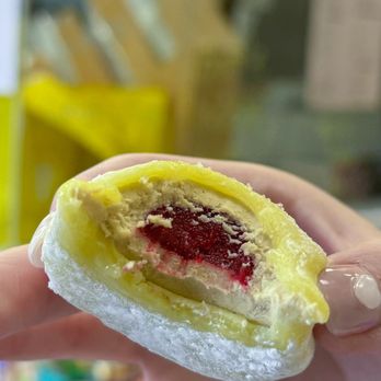 They did offer things beyond matcha and mochi, mostly focusing on organic / clean-eating options, such as energy balls, gluten-free pastries, etc. Their mochi was mascarpone-based so it would be frozen when served and you might have to wait 15-20 mins to enjoy it best. I picked pistachio raspberry and loved it a ton! The snow skin was thin and chewy, the filling was so generous with bold pistachio flavor and nicely refreshing raspberry layer.