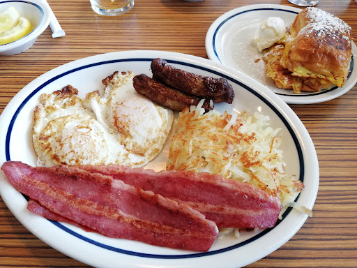 Side note: this location does NOT serve more then 2 syrups at a time . *Maple and strawberry * were their only options. I say this because the establishments selling point is breakfast but most importantly " Pancakes. So,if that's your thing,I'd say ask if they carry any other flavors. Menu: is kinda scattered about. Service: very kind and attentive. Waiting time varies. Small groups 2-3are seen quickest. Larger groups 4and ⬆️ longer Brunch and before I believe they don't use the whole floor. So,you might notice one side completely free and wonder what's up. Atmosphere: is rather dull.no special lighting or interior flair that catches your eye. The design does have a somewhat panoramic view point which showcases the street sidewalk and traffic. But the placement of the building unfortunately has its small drawbacks in the allure department. Reguardless, I enjoyed the meal for what it was...hot,tasty and filling. The hostess/waiters were very kind and gave a homely feel which I feel saved this lil spot a warm corner in my community dives. Over all...