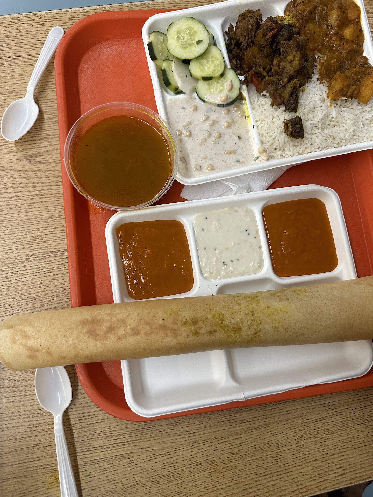 As for the staff, I can not say enough about them. From the manager (or one of the owners, I am not sure)...anyway, I call him Uncle (an Indian custom to show respect), who is incredible all the years I have been going there.. One time I had gotten a few groceries then ordered some chai and samosa to eat there, I was not feeling well, he himself went to the restaurant side and placed the chai and food on a tray for me to take to a table.