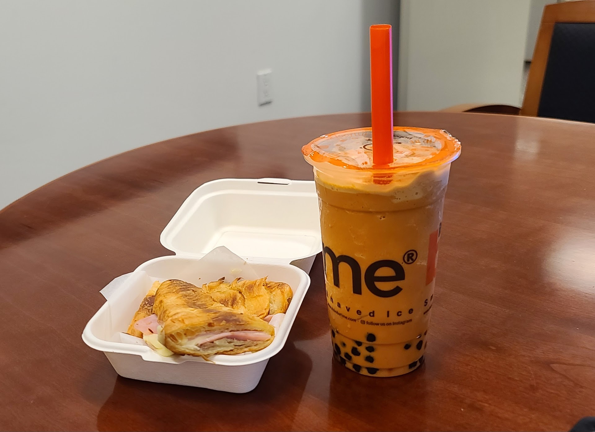 Read moreIf you like shakes, smoothies, or tea with boba, this is a great place to come. I have enjoyed every shake/smoothie/tea I've gotten there. My favorite is probably the horchata smoothie, but the Thai tea smoothie is close behind. In regards to food options, I've only tried the ham & cheese croissant. It's successfully simple, if you like ham, cheese, and a flaky croissant, you will probably enjoy this. Everything seems very appropriately priced. It is very clean and quiet here. On my more recent visit, I had a matchata (matcha and horchata) that was quite good. I tend to like their horchata drinks. I also had the pesto chicken sandwich. The bread they use is very soft in the middle with a nice crunch to it on the outside. The chicken breast was cooked well and the pesto was flavorful. I actually didn’t expect such a decent sandwich...