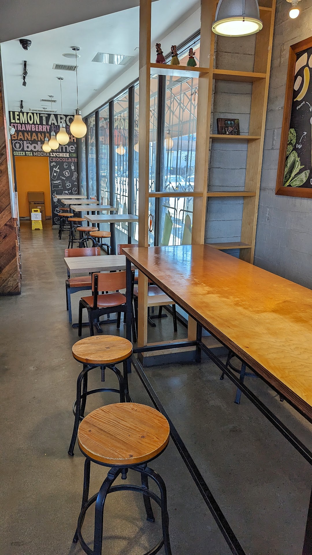 Read moreThere is a parking lot and usually there are always some empty spots which gets you off to a got start with this place. Of course, most people come here for Milktea. Their selection is great and their drinks are well done. The only thing they don't get right is the honey milktea. Instead of dissolving the honey first, they put the whole honey in your drink which makes it sticky as the honey doesn't melt well in an iced drink. What I really like is that they also have a whole set of healthy beverage choices. You can get a green juice for which they use fresh ingredients and make it right in front of you - no artificial anything added but all healthy and good. They also have a tasty acai bowl. Overall a great place to come for tea but also...