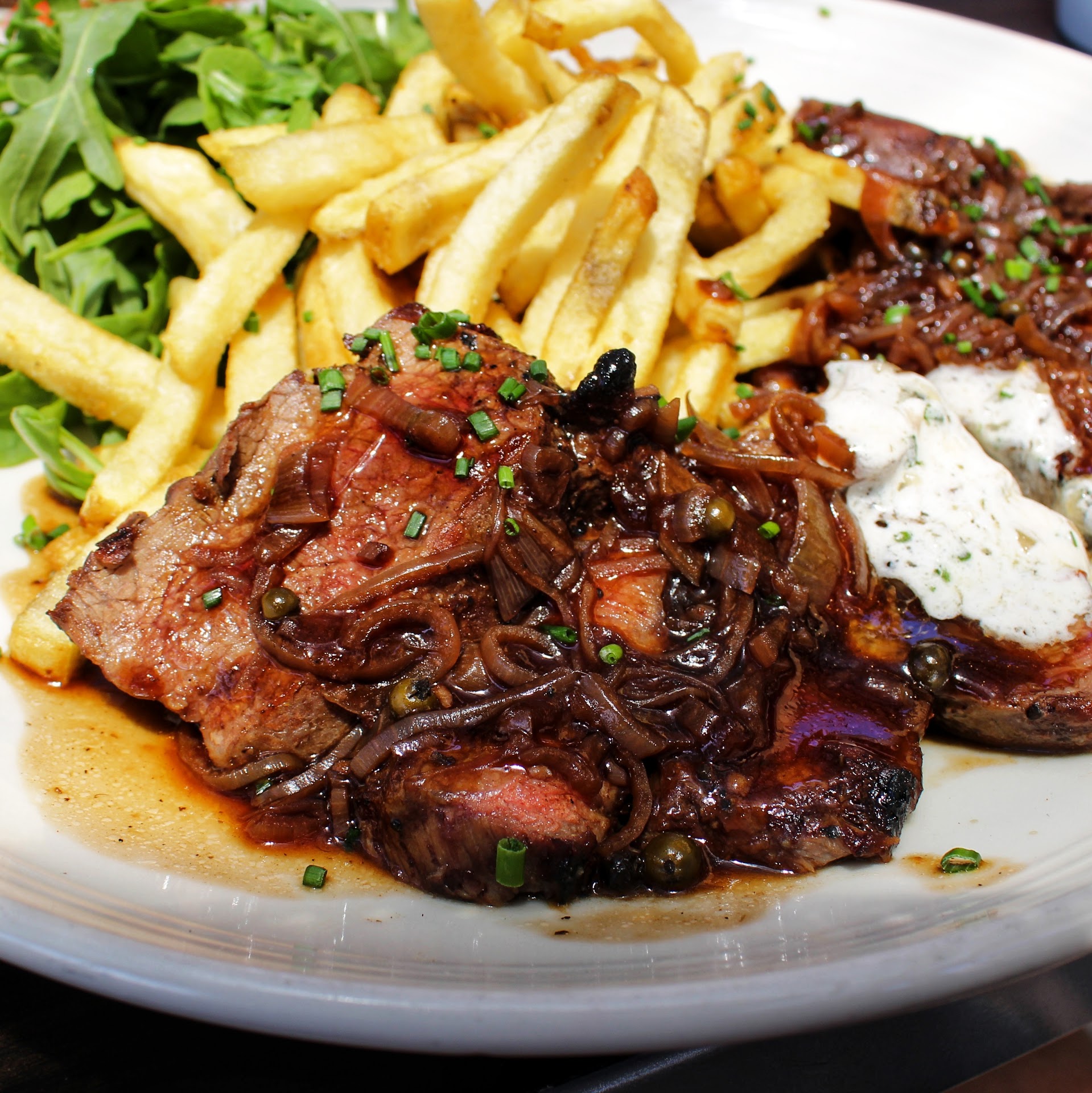 -The hot matcha latte was a mess. Disappointingly, no latte art but not a big deal. The matcha was gritty and tasted weak. That's really all I need to say about it. -The Avocado Toast was one of the best (if not the best) I've ever had. Absolutely delicious, loved the orange white balsamic reduction. -Havana Chicken was surprisingly good and really moist for white meat. It tasted like it had been brined-- juicy with just the right amount of salt. I did not expect to like it that much. -Steak Frites was a disappointment. Too dry and chewy. The grilled onions on the top looked so awful. I'll share a photo but it honestly looked like a bunch of earth worms sitting on top of my meat. Tell me I'm wrong.