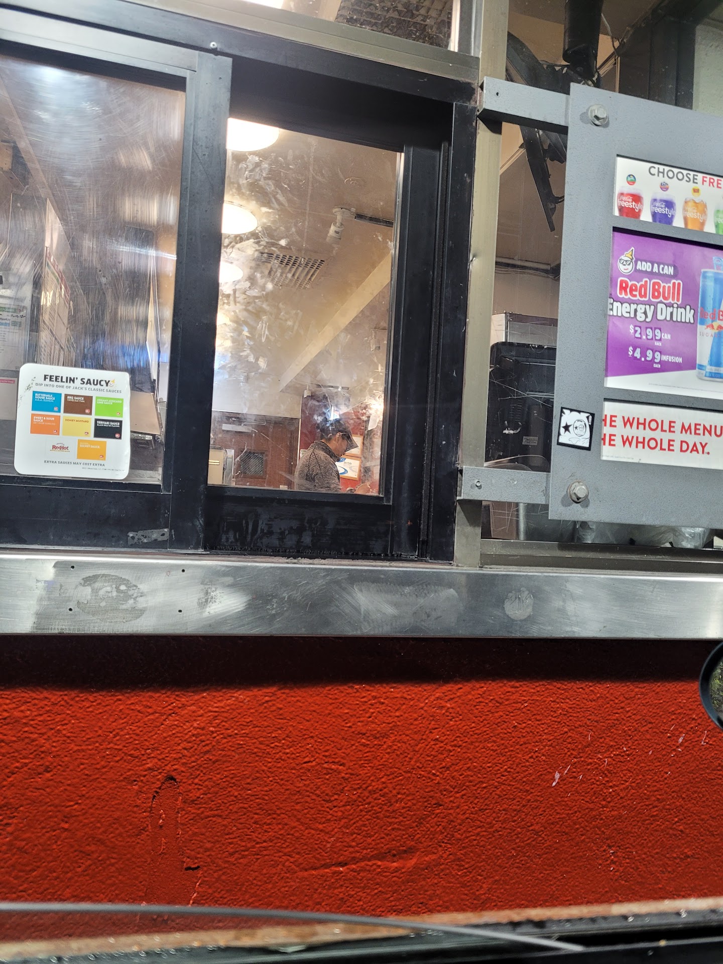 Ā Ā Ā Read moreIt's everything you would imagine it to be. I haven't been to this place as a regular since I was a child. I decided to stop by for nostalgia purposes and was quickly reminded why I don't eat fast food especially from here. I ordered a fajita pita meal and also a Jumbo Jack Jr. The burger was decent, it's hard to mess up a burger but everything else was disappointing. I ordered a coke but it was basically sparkling water. I didn't even bother changing it because I figured I didn't need the sugar anyway. The most offending thing was the pita. I haven't had one in a while but I remember it coming with salsa which was missing. When I bit into it the pita bread was extremely hard and crunchy in some places. I tried but I couldn't eat it. I returned to the store and explained the issue. They seemed not surprised and gave me a refund for the pita.... I remember when Mr. James was the manager, things were a lot better back in...