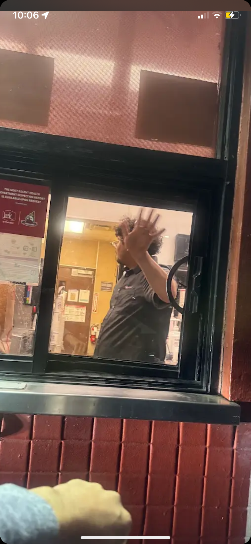 Read moreAs I sit here and write this complaint and read all these other one star reviews because of “James” the manager, I see I’m not the only one with a disgusting interaction with him. I came on 6/18 and tried to let the person at the window know they should fix their speaker because it’s loud and I had to yell for him to hear me and was met with the most disrespectful comment from a “manager” with no name tag who also didn’t know my boyfriend was in the car so as my boyfriend heard this man insulting my intelligence, he spoke up and made his presence known and was met with an even more aggressive jack in the box employee who is now having a verbal screaming match with my boyfriend and the worker slammed the window shut, I immediately knew I wanted a refund and he ran away to the back for a good 10 minuets before I was able to get my refund, he tried to take my phone out of my hand to do the payment process, and I was absolutely appalled when I asked for a manager and he said “I am” I have been coming here for the last 5 years and never will again thank you James!!! For ruining one of my favorite restaurants :) I found a picture of him from a different review and thought I’d share in case he gave me...