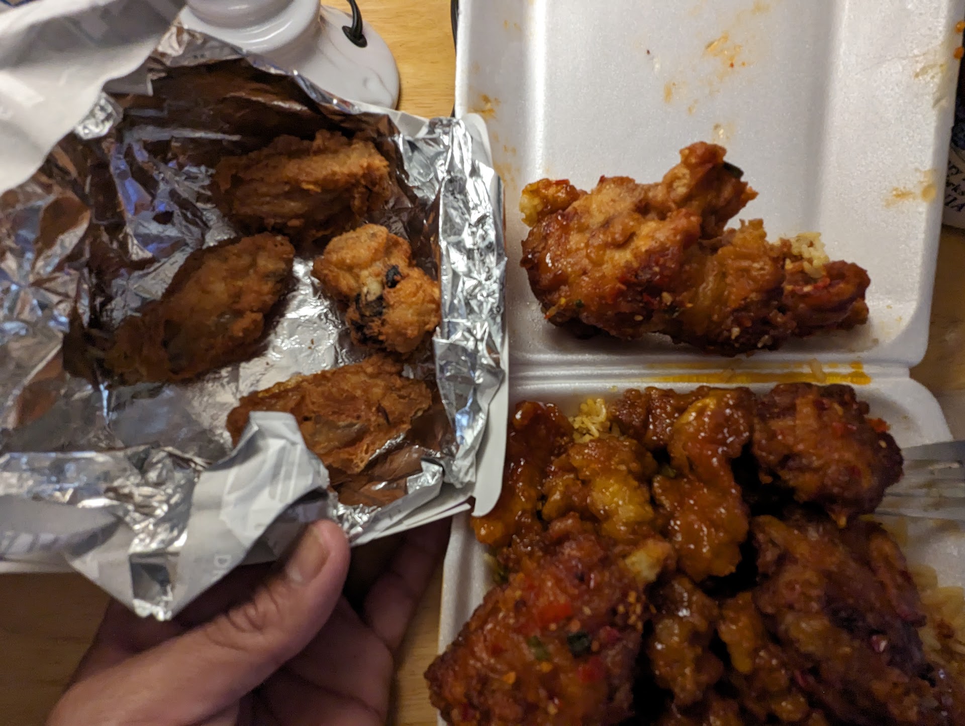 In this photo I provided I have a size comparison between the Jack In The Box wings (left) and some wings I usually get at my local Chinese fast food joint (right). I pay $8.99 +tax for 4 wings, orange chicken and a huge serving of fried rice at that Chinese fast food joint I frequent.
