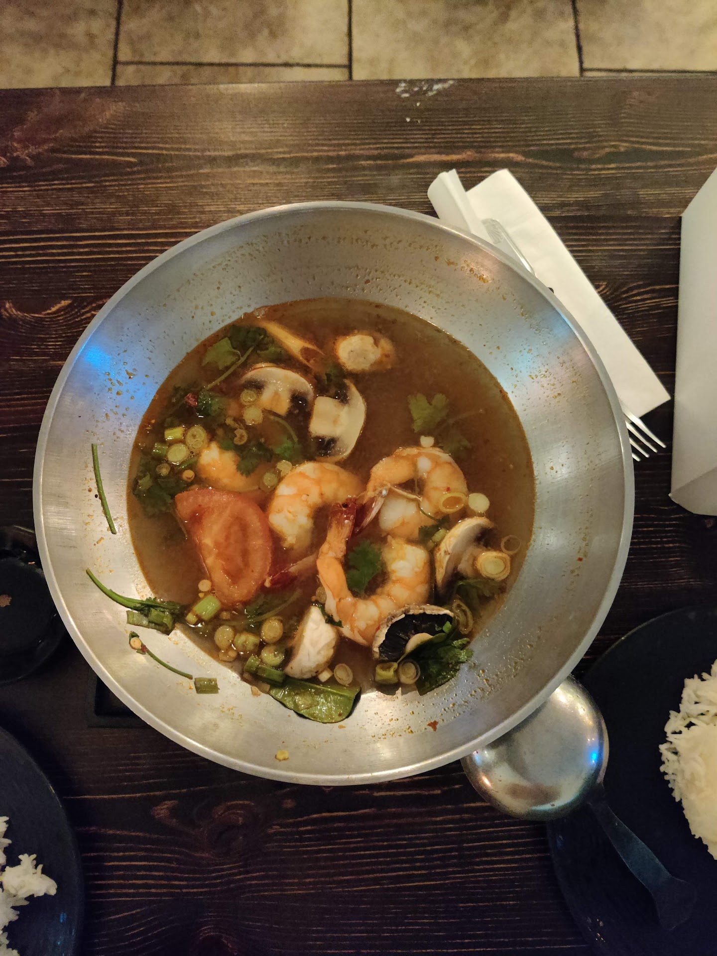 Read moreAnother Covid victim. I ate here numerous times from 2017-2019 and I loved it. Great presentation, flavors right on the money for Thai food, and a generous menu selection. But today... the menu was one page of combos only printed on a copier. Flavors and presentation were way off. They must have lost their cook, and he took his recipes with him. What culture puts sugar in their Wonton Soup? New to me. Kung pao chicken was also sweet, a watery sweet. No Kung pao heat at all. The brown rice that came with the dish was funky brown, like the brown color achieved when you mix white rice with black beans(think Cuban black beans & rice). The chicken was a little over cooked. Easy to do when it's breast meat, diced into pieces too small to pierce with a fork. Everything was edible, but if you blind folded me...I would never guess that I was eating Kung...