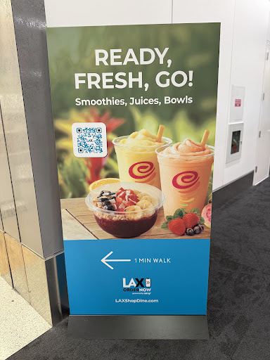 You can scan a QR code and order online for pick up or you can order at the counter. Jamba Juice is located in Terminal 3 by Delta Airlines