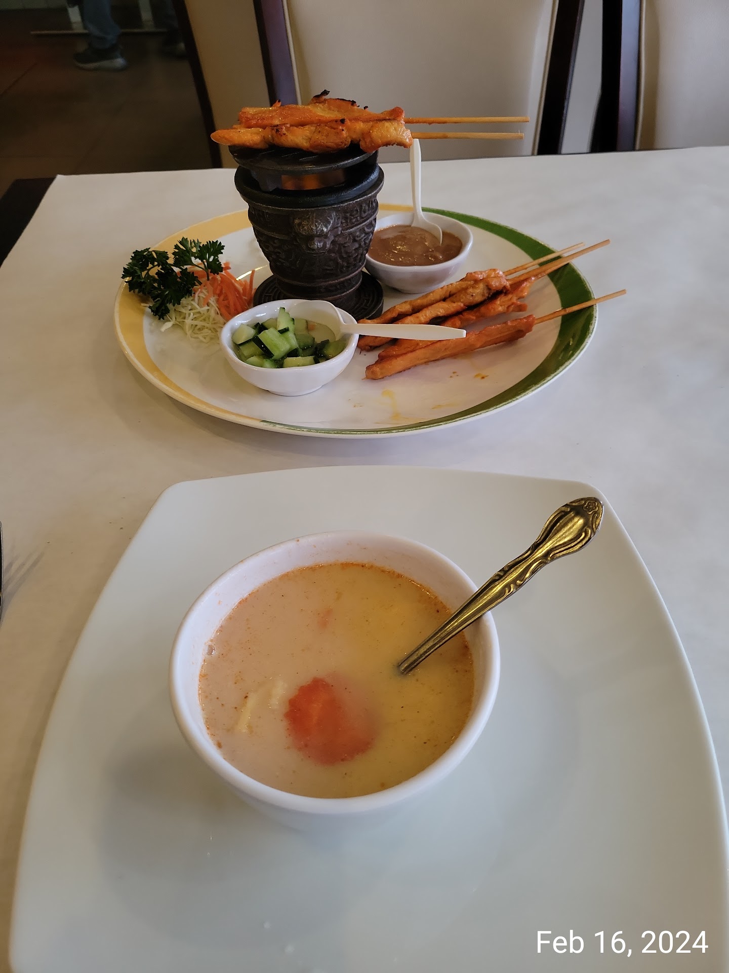 • Appetizer - Chicken Satay • Good quantity for price, good peanut sauce, nice cucumber salad. Chicken could have been seasoned a bit more. • Lunch Special - Yellow Chicken Curry • Excellent value • Comes with soup, Salad, vegetable egg roll, white or brown rice, curry, and dessert. • Tom Kai soup, exceptional • Egg roll meh and greasy • Salad - 3 types of lettuce with a single tomato and cucumber slice, peanut dressing. Recommend adding a bit of ginger for the salad dressing. • White rice is nicely seasoned and cooked. • Yellow Chicken Curry - • Carrot, potato, onion, and Chicken • Good service portion • Bowl full of ingredients, no skimping • Recommend Chicken seasoned before added to soup • Great balance of flavor and heat that will delight most customers. • Server asked preference of heat and can make hotter or more mild as customer wishes. • Dessert -Sticky Rice with Mango • Sticky rice sweet without being overly so • Mango fresh and a nice compliment to the rice • Extras - loyalty program by providing email on receipt will get $10 off for...