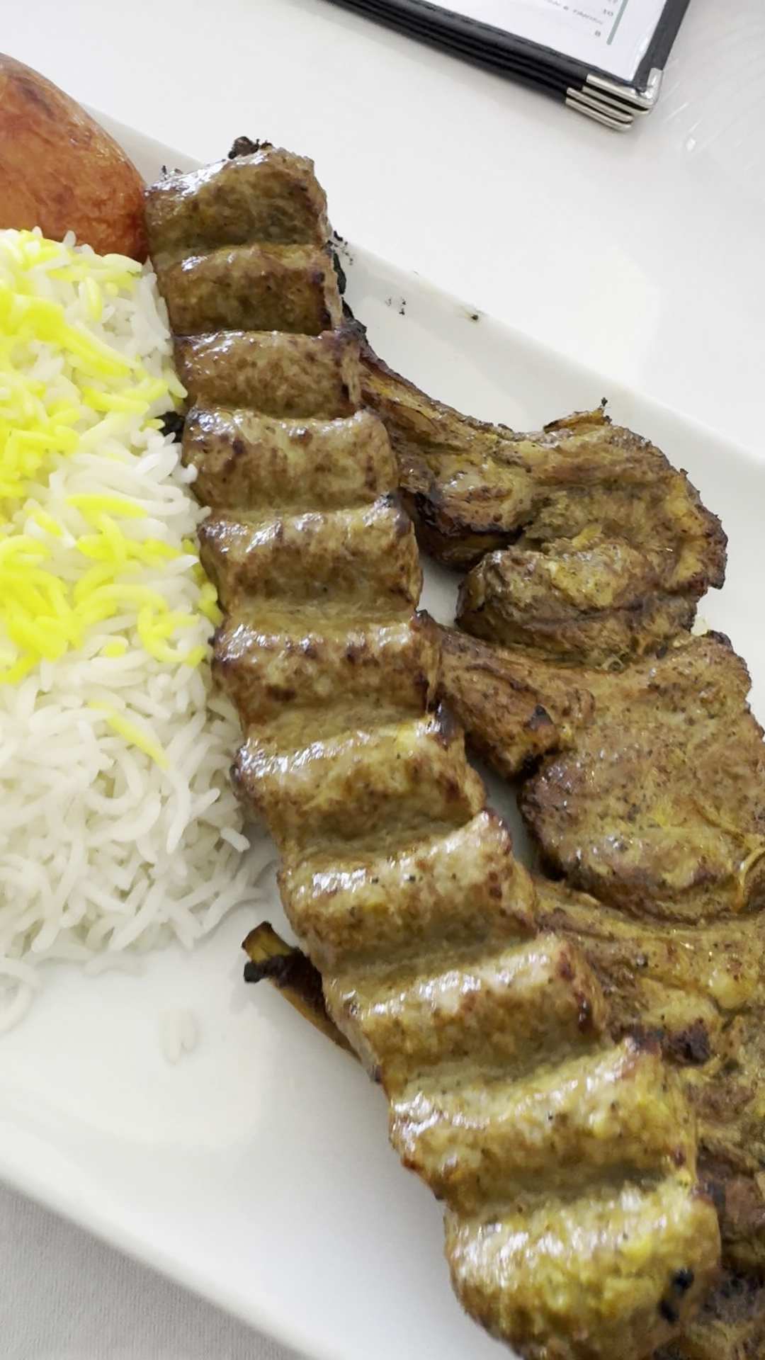 They have a very large menu filled with all sorts of Persian classics. For my most recent visit, I ordered the Kashk O Bademjan as my starter, which I thought was really good. It’s nice to mix up appetizers instead of getting hummus every time. For my entrée I chose the Kobideh with a side of rice and salad. It’s basically like a Persian meatball in the shape of a kebab. Honestly really delicious in flavor and something I order often and would highly recommend. They also bring out free wraps and onions, which I love. They don’t skimp on the portion sizes either, and you will not leave hungry.