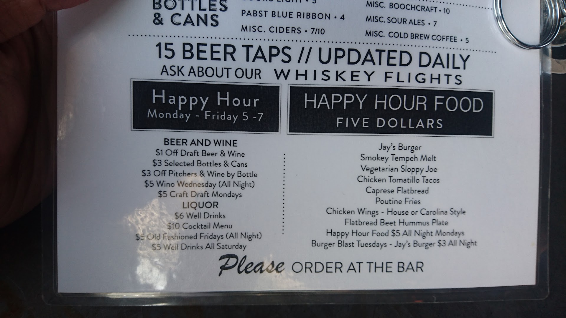 Read moreJay's Bar is rad local gastropub that offers an awesome HAPPY HOUR, a nice whiskey selection, and sports watching (they have TVs up).