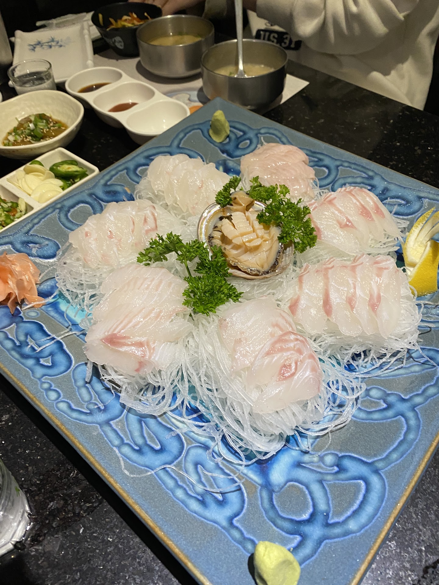 Read moreThe side dishes weren’t fresh. Tasted like couple days old. The fish is just medium quality. Its better to buy the same amount at h mart for third of the price. The thing that made me write is that the service was absolutely terrible. No water, no plate, no soy sauce plate, had to wait extra 20 min after reservation time. The price is wayyyy too high for the service and quality. Would not recommend. Oh and last thing, you will not find parking here, just take uber here if u wanna...