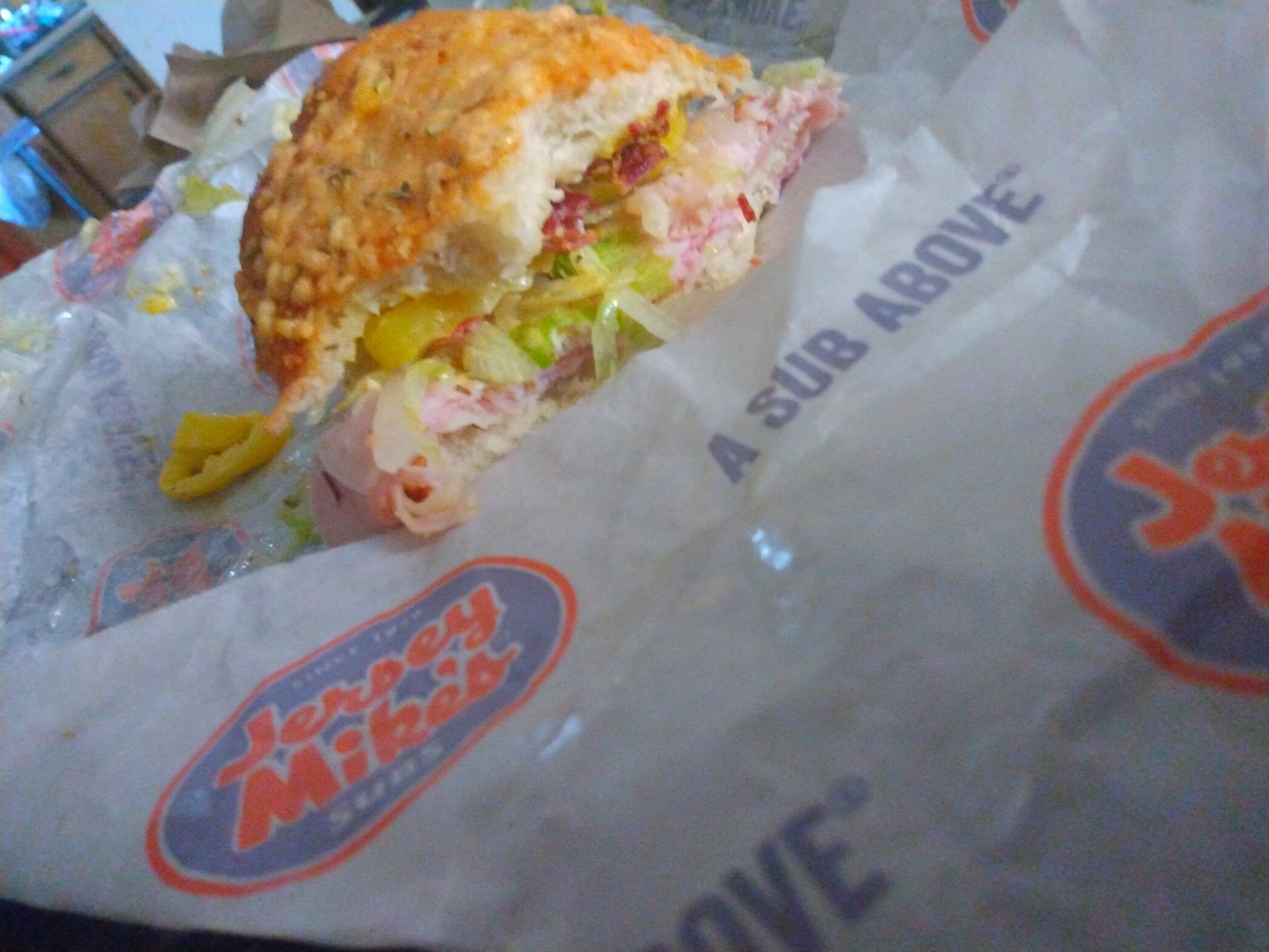 Read more"A Sub Above" is there motto ! I most definitely agree way fresher than subway!I just had to snap a picture before the whole sandwich was gone. Jersey Mike's will shave the meat into for ready deli meat right in front of your face and they have all the side tops to add to ur sandwich!!! Of course with Mike's special touch. The staff is neatly dressed and friendly, The store has the scent of freshly baked bread and green pickles, lettuce and oil .... Highly recommend for a...