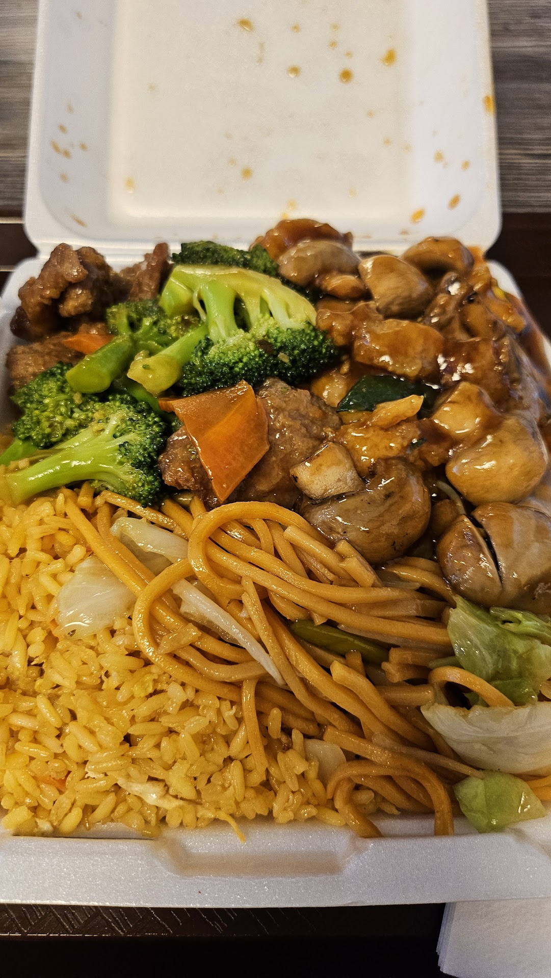 You are at the red light. You see Panda express and want to go. Then. As you park at Panda, you notice a strip mall "Jin dragon wok" across the street. You don't think much of it until you look at the reviews on google. You notice it has above 4 star rating, and the food looks amazing. You cross the street and park. You walk into a well lit, comfortable, friendly, dining area. Fun decor catches your eye. You see freshly cooked food that hasn't sat under heat lamps long. A 3 choice combo for less than $12?! Wait a minute....this isn't real. Neither is your stomach able to consume the entire, hefty poritoned items. You choose half and half rice and rice noodles, BBQ pork, mushroom chicken, and teriyaki chicken. You sit down at a comfortable boot and eat. The woman behind the counter is friendly and attentive. If you order from this place, it has a restroom. A rare find for strip mall chinese joint. This place is top tier. Tastes like someones family invited you to their house for food. Bring friends or stop by for a...