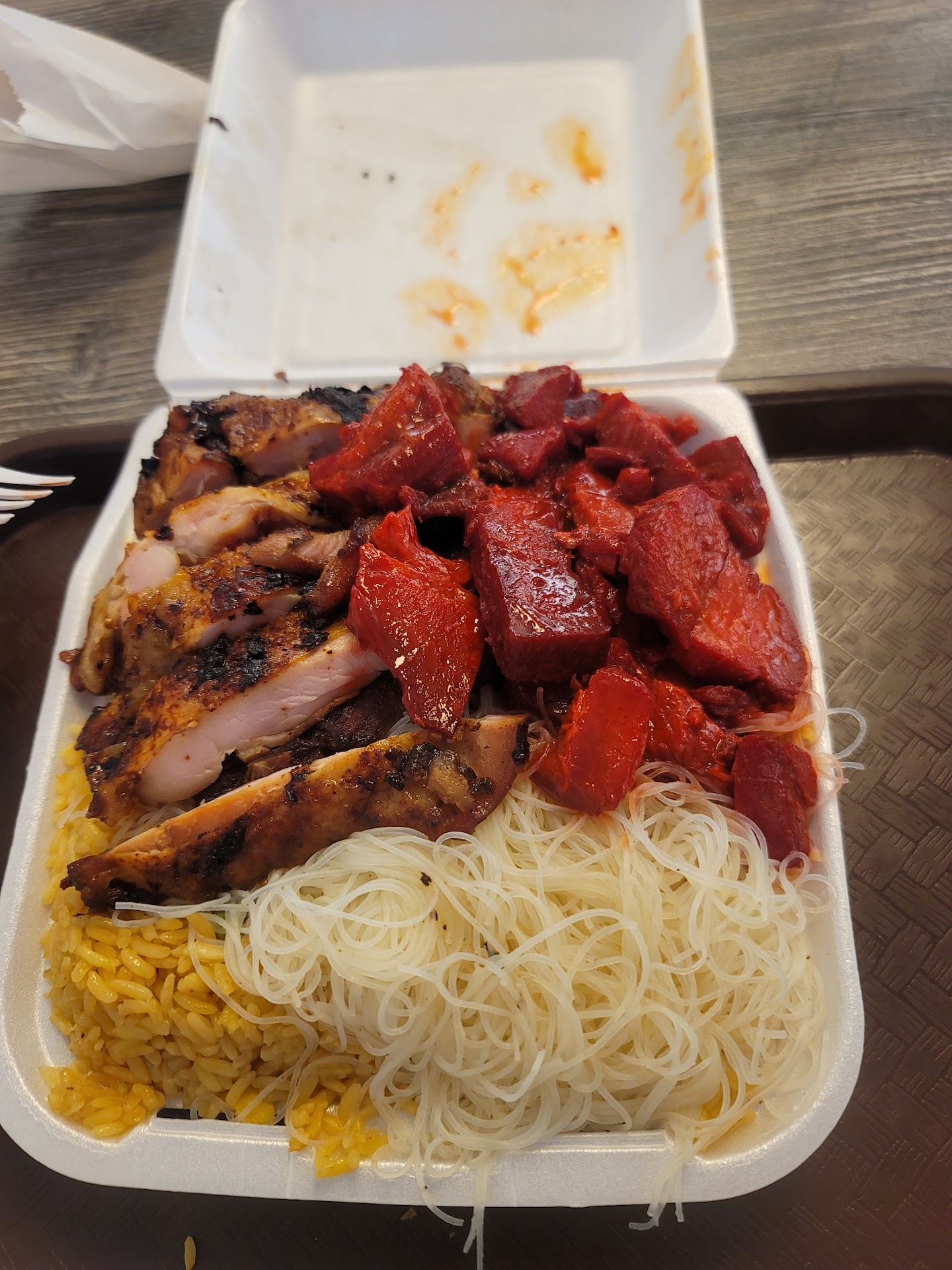 Read moreSo we stopped to try this place as it welcomed us with their sign in Spanish. The place was clean and well maintained it had an A posted and gave us a good vibe. As we walked in there was a variety of selections like any other Chinese food restaurant. I was going to wait until I tried more food, but it was a bit out of my way and the food was not the best. It is good if you're in the area. The noodles had way too much pepper. The rice, BBQ pork, and orange chicken were good. The chicken and green beans were nothing to rave about. Egg rolls were fine. I wanted to try the wontons, but $1 for one wonton just seemed excessive (egg rolls were a dollar too). 20¢ extra charge for the egg roll sauce and I was sharing, but they said "no one sauce only for 2 egg rolls" I said I wanted one and my friend wants one egg roll and we don't want to share. The response was 20¢ so we paid 20¢ and waited for the fresh noodles, and rice, but I don't think we will return. The food was not...