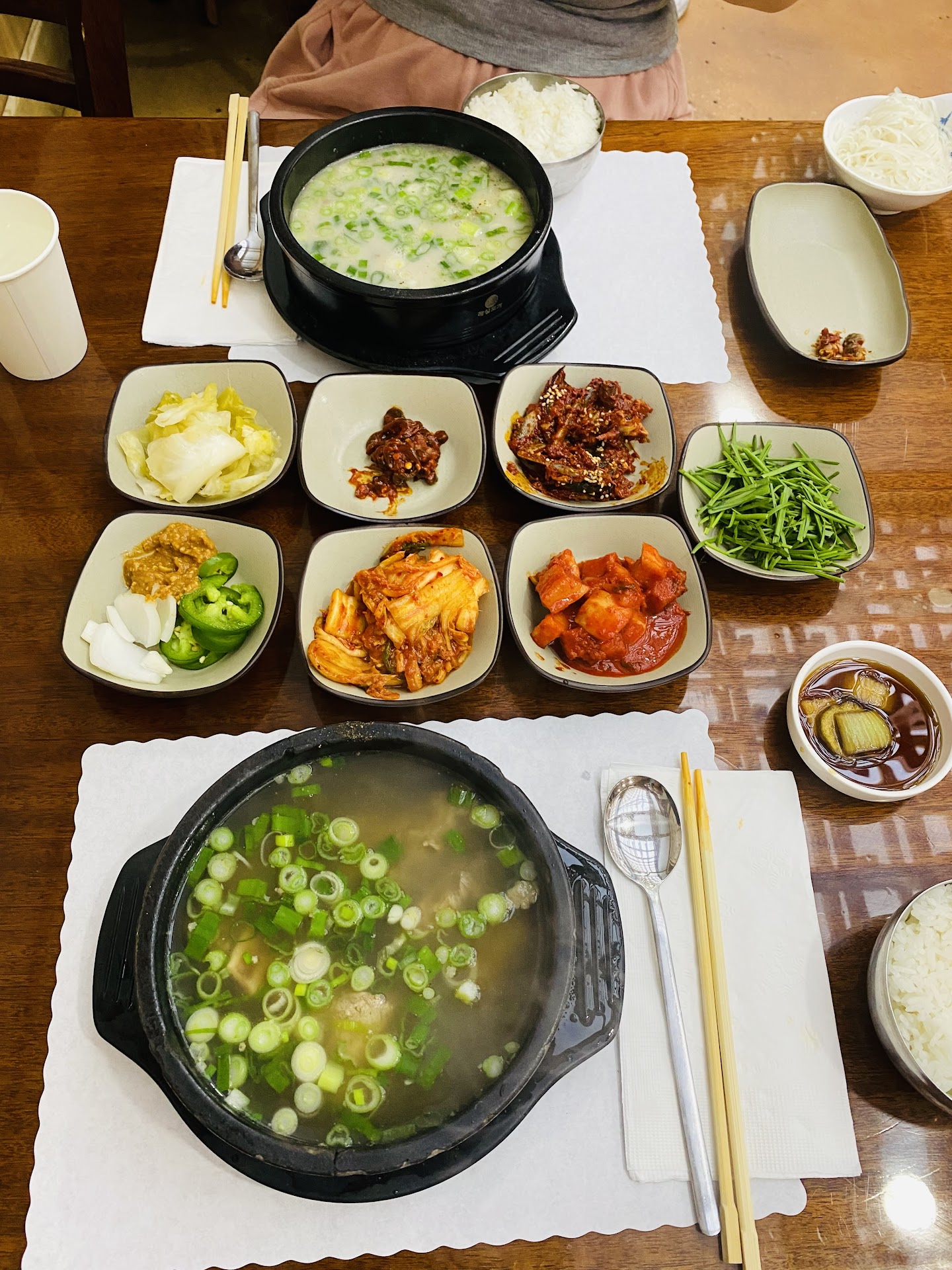 We decided to come to this location because they open earlier, but deeply regretted this decision. This location is simply not as good as the original. Or maybe standards just went down overall. Food: Kimchi tastes store bought, itโs not the fresh umami taste that is what Iโve always loved. The pork soup isnโt as flavorful as what it should be. Boiled pork tasted good, but the quantity is wayyyy less than photos/what we experienced at the original store when we last visited LA. Itโs probably like only half the number of slices. Service: When asked if the boiled pork came with a serving of soup, server told us just a little bit of soup, but in the end it came with a whole full size soup (just without pork meat inside). Because of that we ended up with 3 huge bowls of soup between 2 people that thereโs no way we could finish, and the soup wasnโt even that good (see โfoodโ section above).