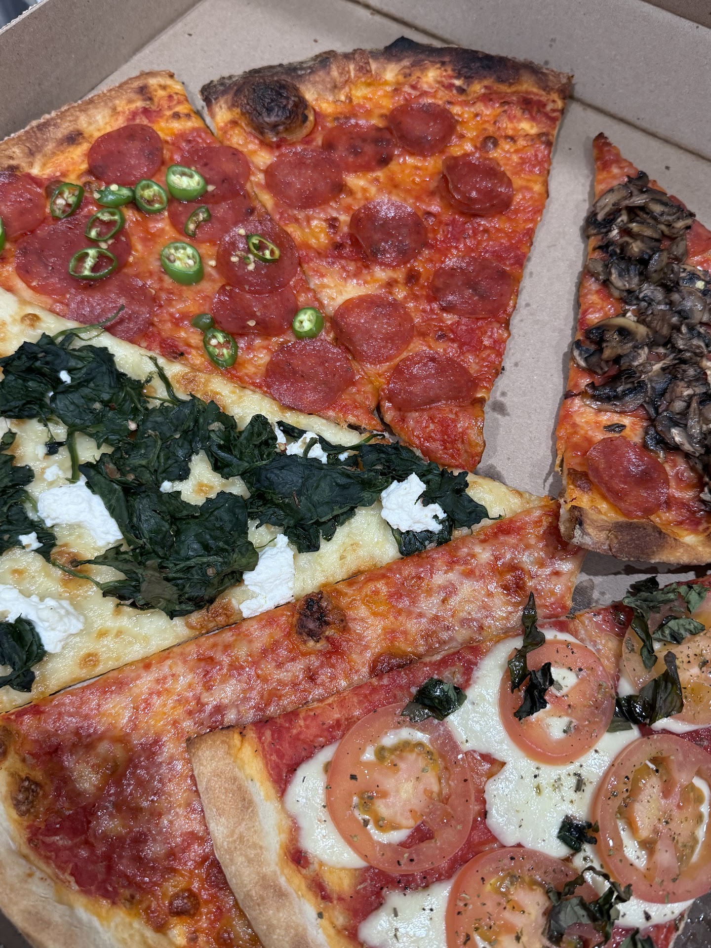 The pizza was light and airy towards the center got thicker as you went out, it was good in a artisan pizza category, flavor is debatable maybe Iāve killed my taste buds with the amount of vodka Iāve consumed in a lifetime, like it wasnāt bad, it was quite good. I just couldnāt find any flavor. Usually, you can taste some part of the cheese or some something. I was expecting like an explosion of flavor, especially when you have a video of yourself on the TV making the pizza cutting and serving it like your professional you probably are, but whoever fills in for you š, asked for the pepperoni and one of the veggie ones I ended up getting a cheese and the veggie one. Iām overly confused eating like there no solid hints or notes of anything in the pizza. Then again, maybe Iām just picky cause I got a good selection of cheese back in Wisconsin. Double cooking it was odd, I get your just warming it up but both my pieces were charred in quite a few places, like it looked cooked. Iām good with that. Give me what I pointed at. Just give me that it was my first time visiting. It will probably just be my last time because I donāt live here, but I definitely would revisit to see if the pizza varies by the chef...